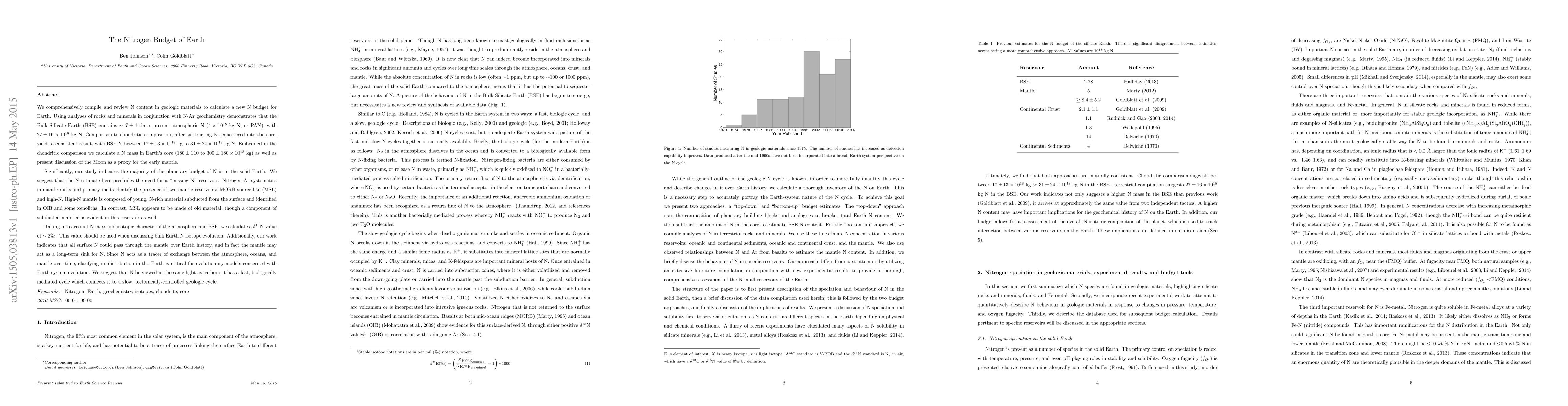 The paper calculates a new nitrogen budget for Earth, estimating that about 70% of the planet's nitrogen is stored in solid Earth, eliminating the need for a 'missing N' reservoir. It also identifies two mantle reservoirs with distinct nitrogen compositions.