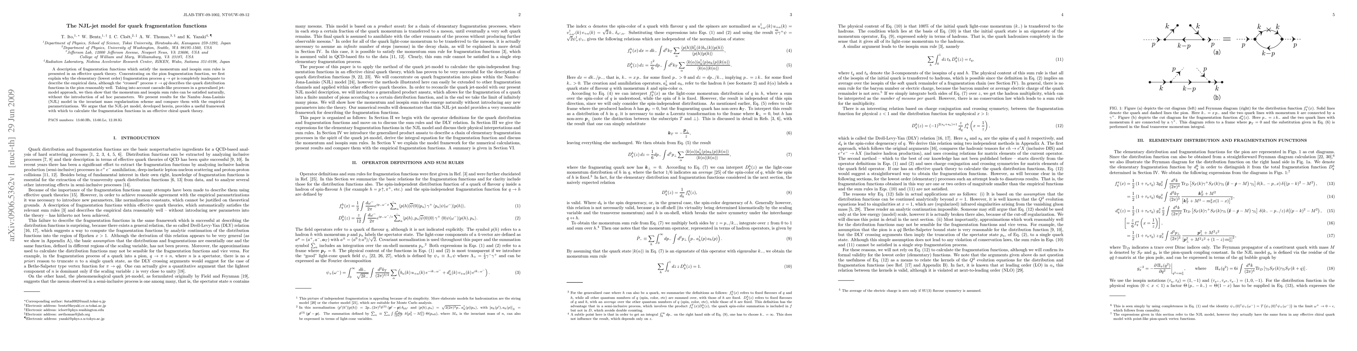 The NJL-jet model is presented to describe quark fragmentation functions that satisfy momentum and isospin sum rules, showing that cascade-like processes improve upon the inadequate lowest-order fragmentation model. The model's results align well with empirical data, offering a robust framework for effective chiral quark theory calculations.