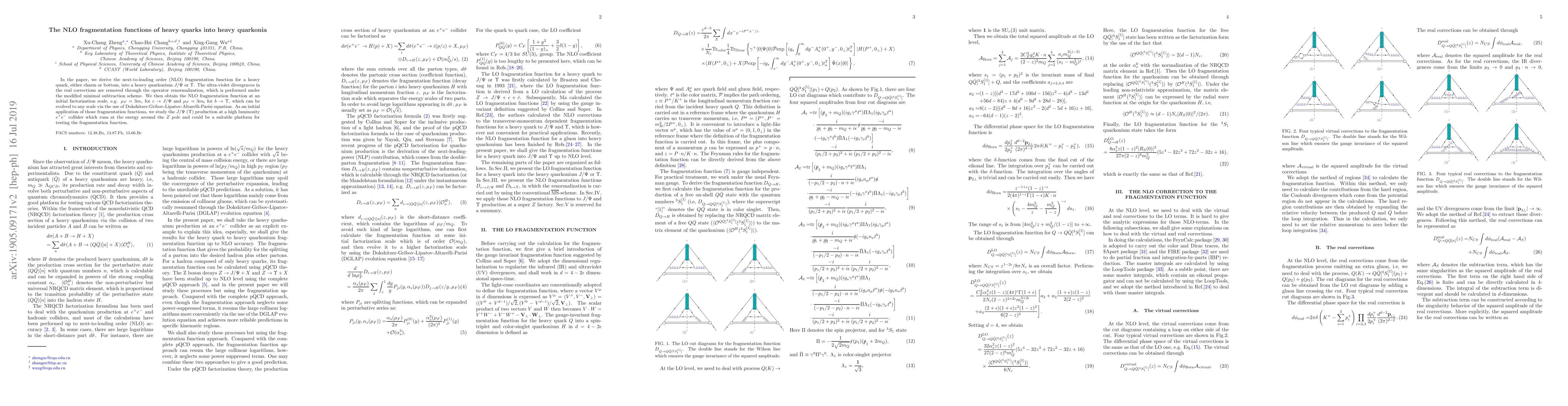 In the paper, we derive the next-to-leading order (NLO) fragmentation function for a heavy quark, either charm or bottom, into a heavy quarkonium $J/\Psi$ or $\Upsilon$. The ultra-violet divergences in the real corrections are removed through the operator renormalization, which is performed under the modified minimal subtraction scheme. We then obtain the NLO fragmentation function at an initial factorization scale, e.g. $\mu_{F}=3 m_c$ for $c\to J/\Psi$ and $\mu_{F}=3m_b$ for $b\to \Upsilon$, which can be evolved to any scale via the use of Dokshitzer-Gribov-Lipatov-Altarelli-Parisi equation. As an initial application of those fragmentation functions, we study the $J/\Psi$ ($\Upsilon$) production at a high luminosity $e^+e^-$ collider which runs at the energy around the $Z$ pole and could be a suitable platform for testing the fragmentation function.