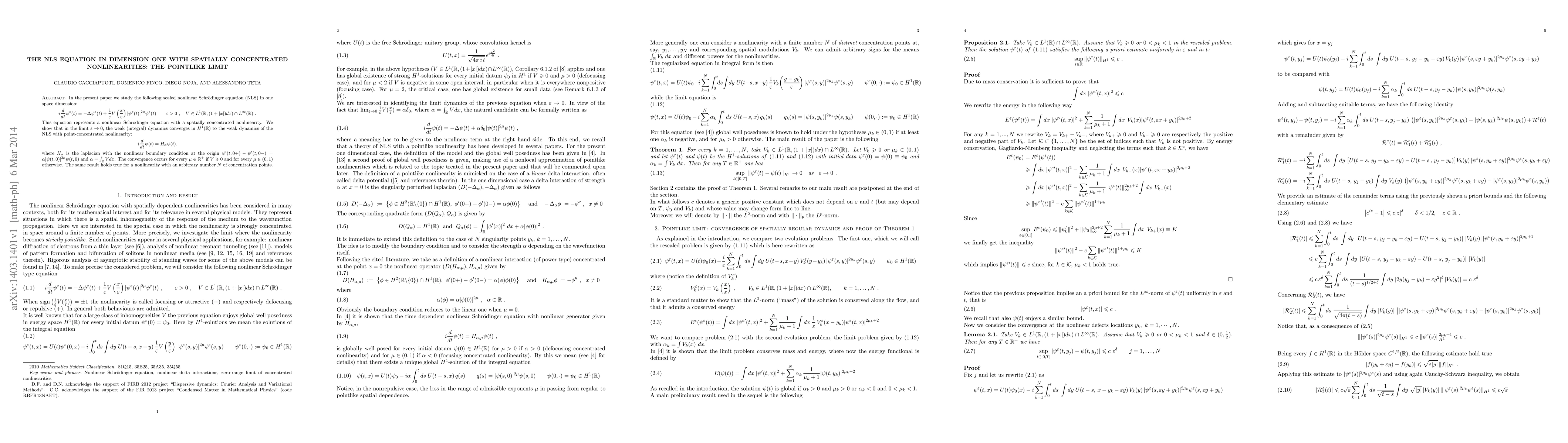 This paper investigates the scaled one-dimensional nonlinear Schrödinger equation with spatially concentrated nonlinearities, demonstrating that as the concentration scale approaches zero, the dynamics converge to the dynamics of the equation with a point-concentrated nonlinearity. The convergence holds for positive real values of the nonlinearity exponent under specific conditions on the concentration function.