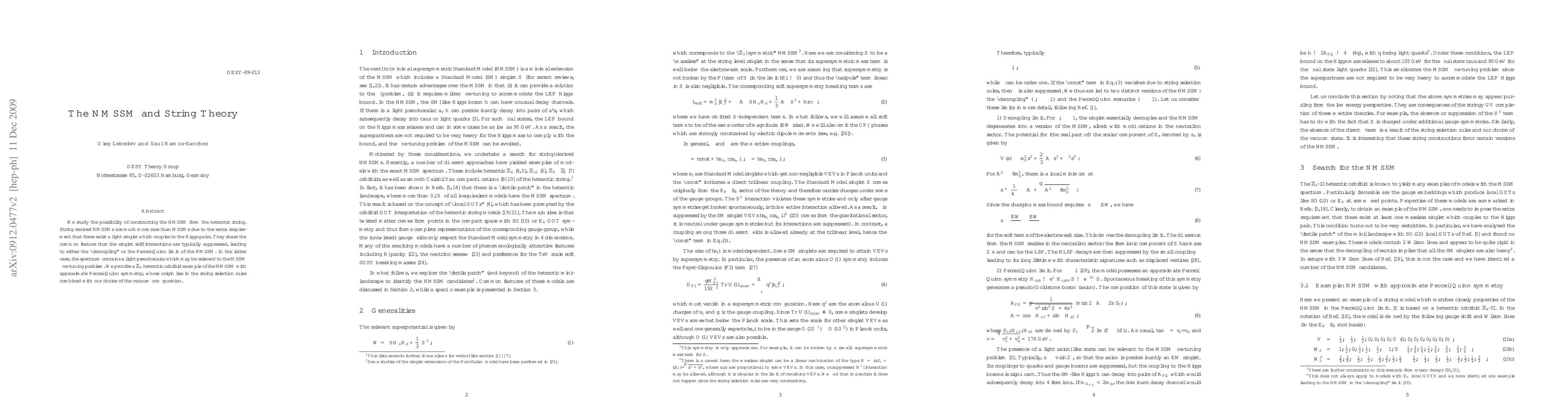 This paper explores the construction of the Next Minimal Supersymmetric Standard Model (NMSSM) from the heterotic string theory, highlighting the rarity of string-derived NMSSMs due to the need for a light singlet coupling to Higgs pairs. The study provides a Z_6 heterotic orbifold example demonstrating an NMSSM with approximate Peccei-Quinn symmetry, potentially addressing the MSSM fine-tuning problem.