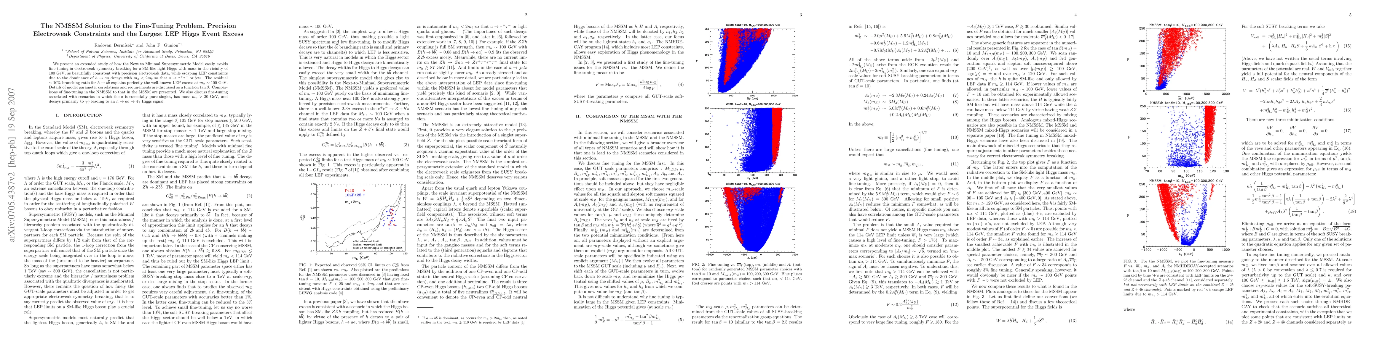This paper explores the Next to Minimal Supersymmetric Model (NMSSM) to address the fine-tuning problem in electroweak symmetry breaking, demonstrating its consistency with precision electroweak data and the LEP Higgs excess through specific decay channels. It also compares fine-tuning levels between NMSSM and MSSM, and discusses scenarios where the singlet Higgs decays predominantly to photons.