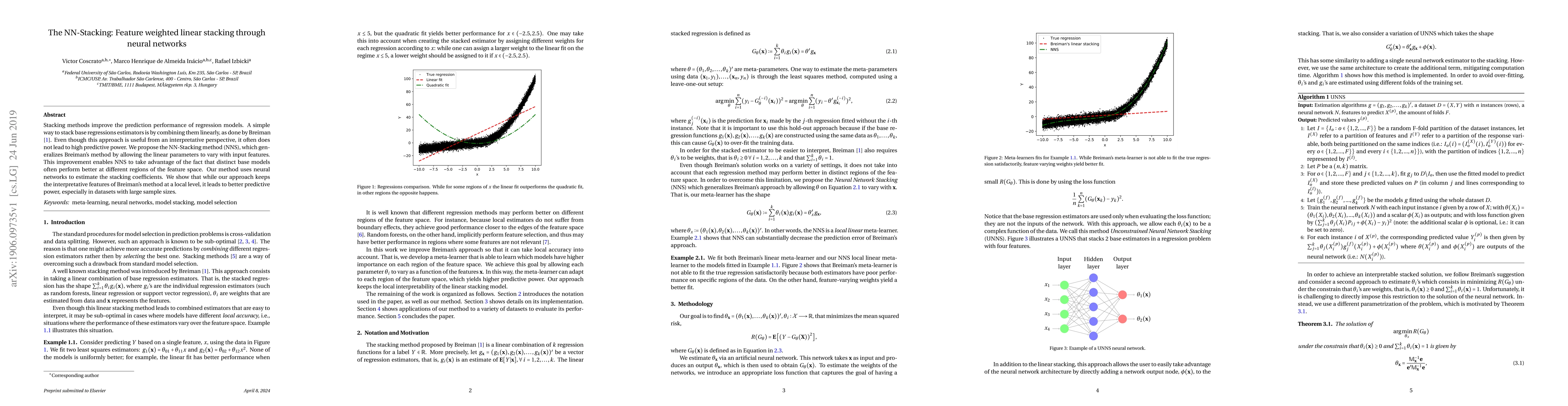 Stacking methods improve the prediction performance of regression models. A simple way to stack base regressions estimators is by combining them linearly, as done by \citet{breiman1996stacked}. Even though this approach is useful from an interpretative perspective, it often does not lead to high predictive power. We propose the NN-Stacking method (NNS), which generalizes Breiman's method by allowing the linear parameters to vary with input features. This improvement enables NNS to take advantage of the fact that distinct base models often perform better at different regions of the feature space. Our method uses neural networks to estimate the stacking coefficients. We show that while our approach keeps the interpretative features of Breiman's method at a local level, it leads to better predictive power, especially in datasets with large sample sizes.