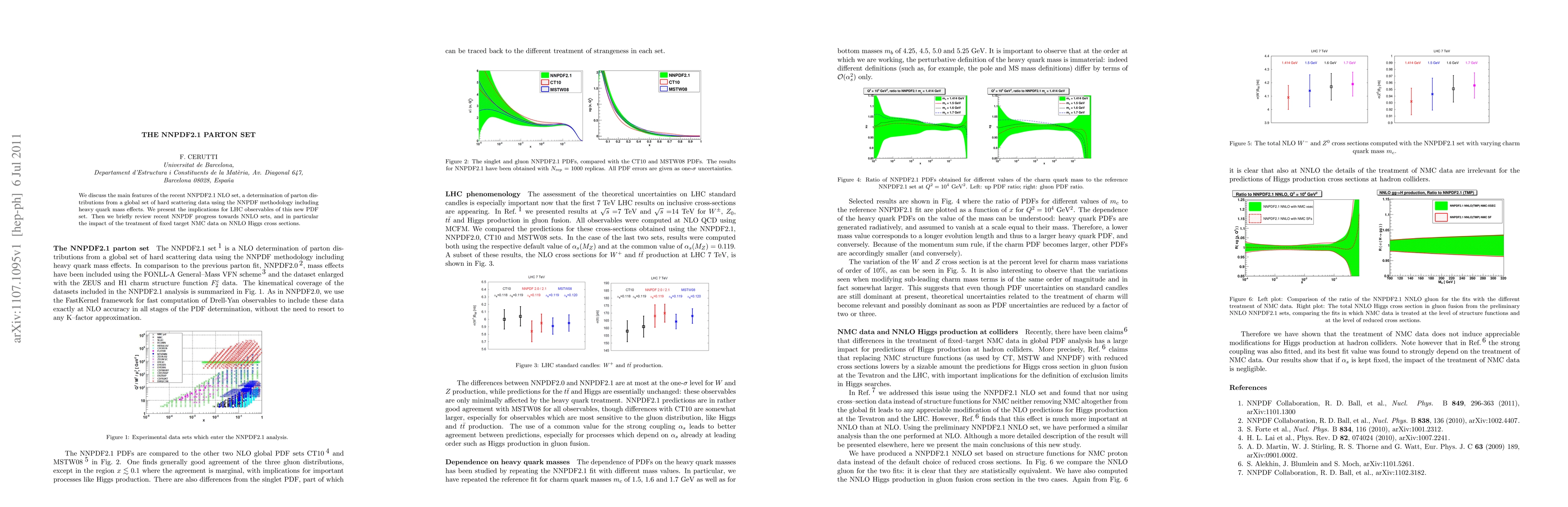 The NNPDF2.1 set provides updated parton distributions derived from global hard scattering data using the NNPDF methodology, including heavy quark mass effects, with implications for LHC observables. Recent advancements towards NNLO sets, especially the treatment of NMC data, impact NNLO Higgs cross sections.