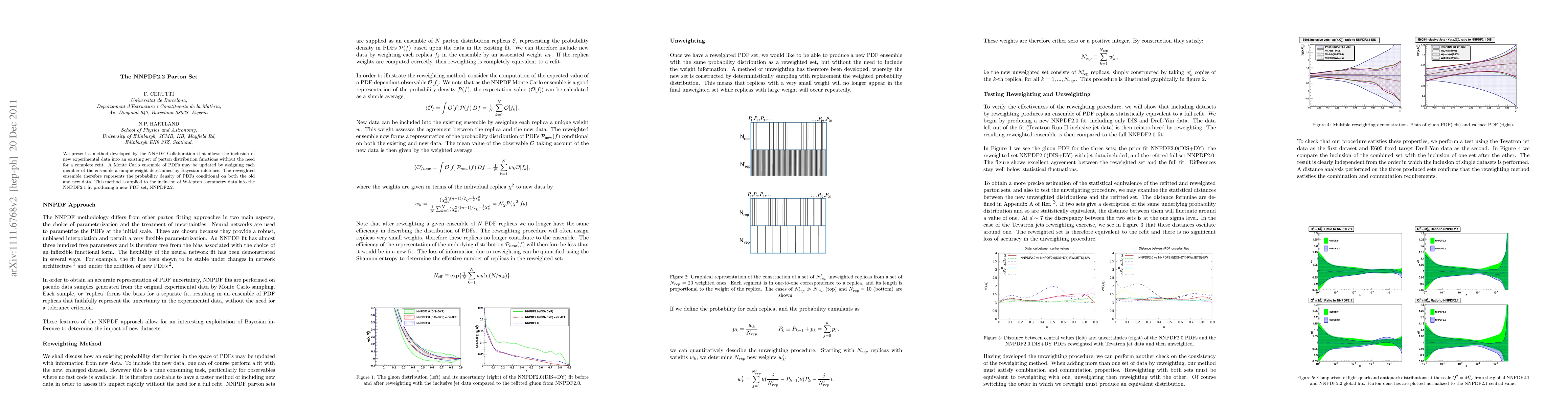 The NNPDF2.2 parton set incorporates new experimental data via a Bayesian inference method, updating a Monte Carlo ensemble without a full refit, and applies this to integrate W-lepton asymmetry data into the NNPDF2.1 set.