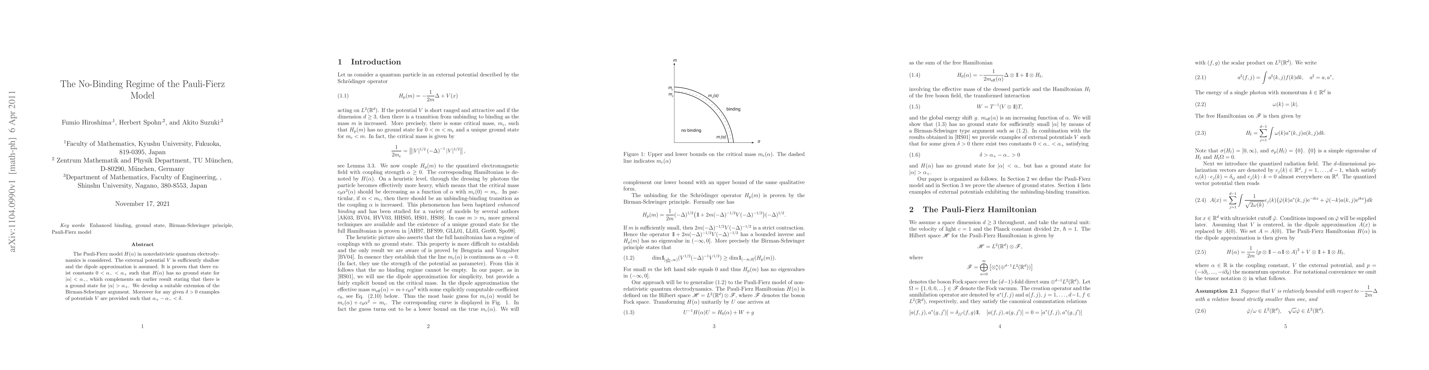 The Pauli-Fierz model has no ground state for certain values of external potential alpha within a range defined by constants $ heta_-$ and $ heta_+$, with implications for quantum electrodynamics.