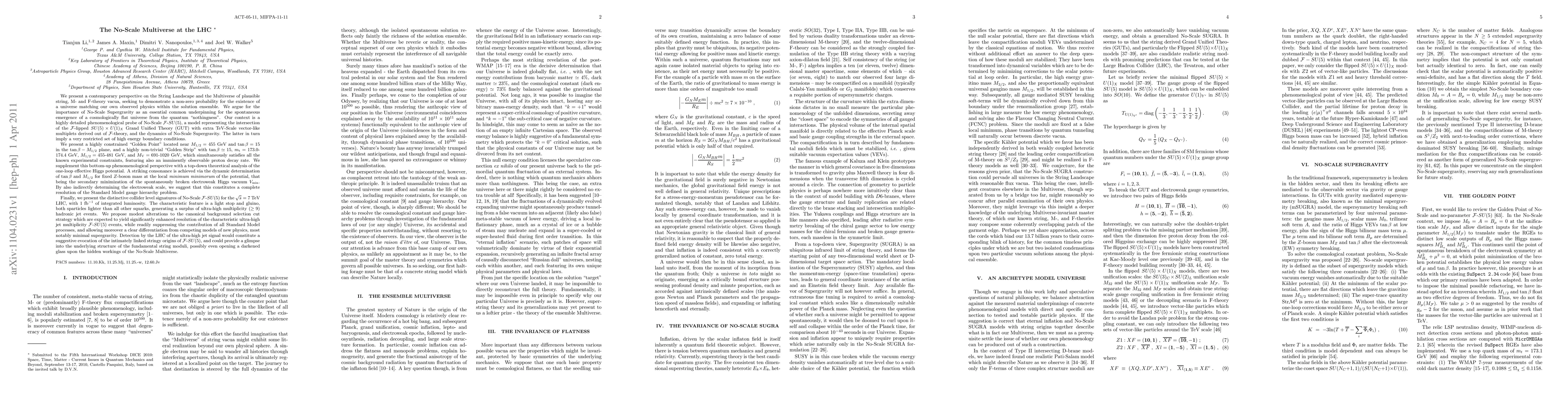 We present a contemporary perspective on the String Landscape and the Multiverse of plausible string, M- and F-theory vacua, seeking to demonstrate a non-zero probability for the existence of a universe matching our own observed physics within the solution ensemble, arguing for the importance of No-Scale Supergravity as an essential common underpinning. Our context is a highly detailed phenomenological probe of No-Scale F-SU(5), a model representing the intersection of the F-lipped SU(5) X U(1)_X Grand Unified Theory (GUT) with extra TeV-Scale vector-like multiplets derived out of F-theory, and the dynamics of No-Scale Supergravity. We present a highly constrained "Golden" region with tan(beta) \sim 15, m_t = 173.0 - 174.4 GeV, M_1/2 = 455 - 481 GeV, and M_V = 691 - 1020 GeV, which simultaneously satisfies all known experimental constraints. We supplement this bottom-up phenomenological perspective with a top-down theoretical analysis of the one-loop effective Higgs potential, achieving a striking consonance via the dynamic determination of tan(beta) and M_1/2 at the local secondary minimization of the spontaneously broken electroweak Higgs vacuum V_min. We present the distinctive signatures of No-Scale F-SU(5) at the LHC, where a light stop and gluino are expected to generate a surplus of ultra-high multiplicity (>= 9) hadronic jet events. We propose modest alterations to the canonical background selection cut strategy which would enhance resolution of these events, while readily suppressing the contribution of all Standard Model processes, and allowing a clear differentiation from competing models of new physics. Detection by the LHC of the ultra-high jet signal would constitute a suggestive evocation of the intimately linked stringy origins of F-SU(5), and could provide a glimpse into the fundamental string moduli, and possibly even the workings of the No-Scale Multiverse.