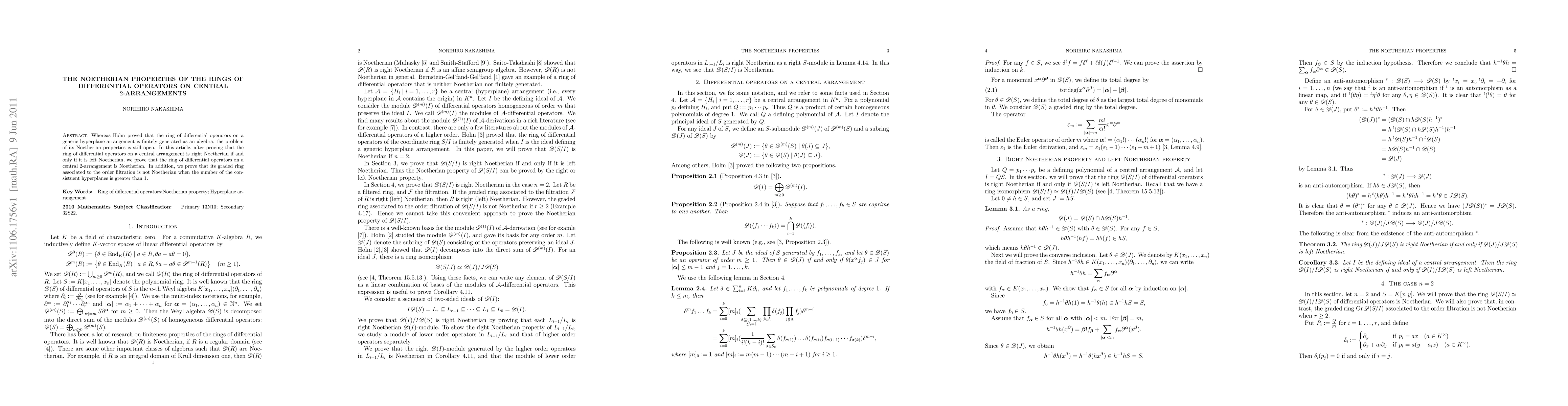 This paper proves that the ring of differential operators on a central 2-arrangement is Noetherian, while establishing that the ring is right Noetherian if and only if it is left Noetherian. It also shows that the associated graded ring under the order filtration is not Noetherian when there are more than one constituent hyperplanes.