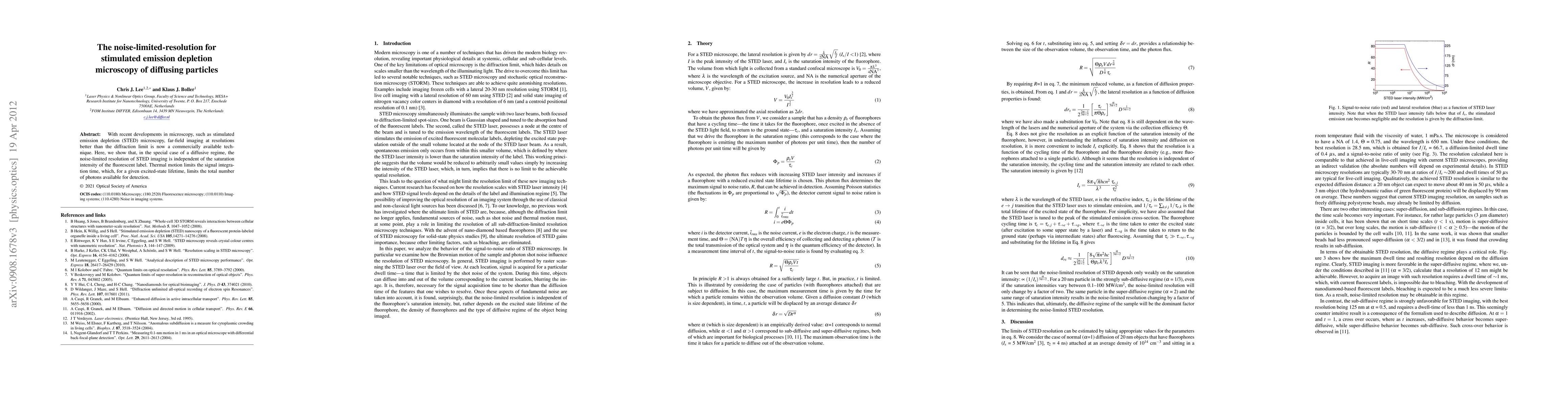 This paper investigates the noise-limited resolution in STED microscopy, revealing that in a diffusive regime, the resolution is not influenced by the saturation intensity, but instead limited by thermal motion and the total number of photons available for detection due to the excited-state lifetime.