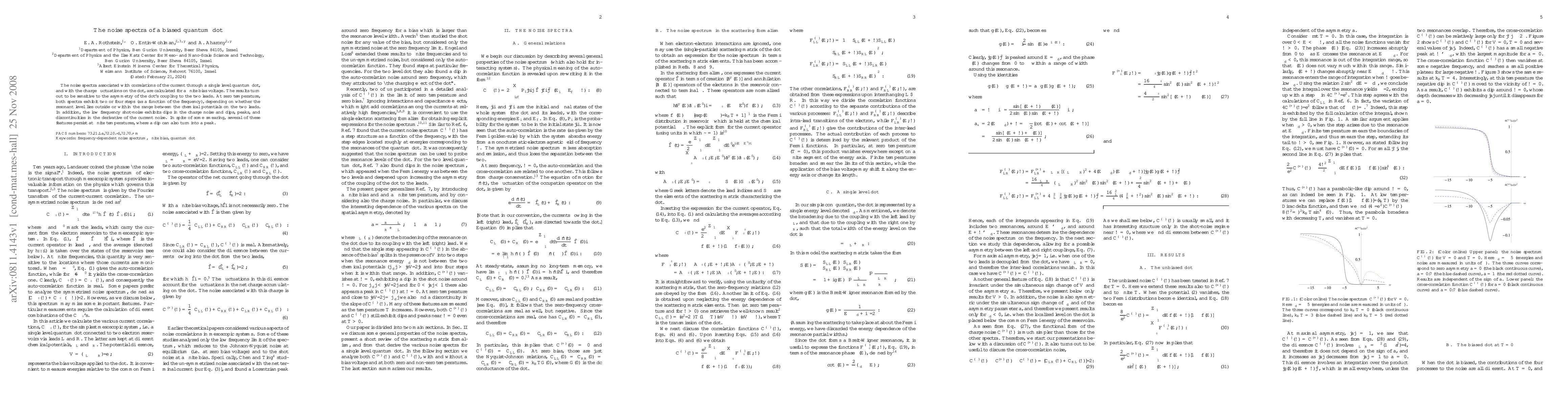 This paper calculates the noise spectra for a biased quantum dot under finite bias voltage, revealing sensitivity to the dot's coupling asymmetry. At zero temperature, the spectra show distinct steps depending on the resonant level's position relative to the chemical potentials, with notable features like dips and peaks in shot noise and current noise derivatives. These features persist, albeit smeared, at finite temperatures.