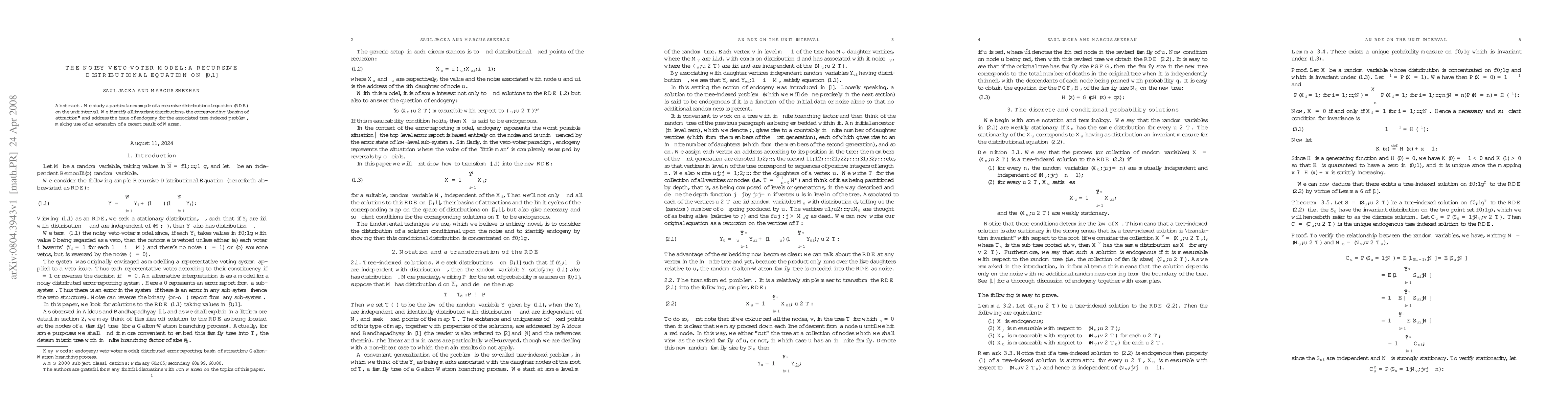This paper investigates a recursive distributional equation (RDE) on the unit interval, identifying all invariant distributions and their "basins of attraction," and addressing endogeneity in the associated tree-indexed problem, building on an extension of Warren's recent findings.