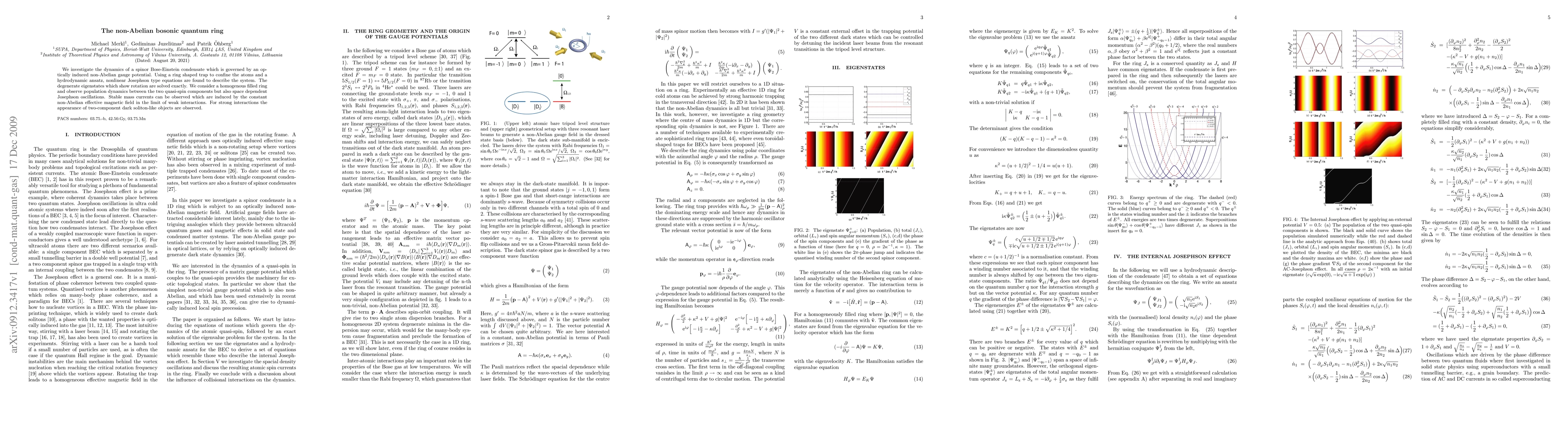 We investigate the dynamics of a spinor Bose-Einstein condensate which is governed by an optically induced non-Abelian gauge potential. Using a ring shaped trap to confine the atoms and a hydrodynamic ansatz, nonlinear Josephson type equations are found to describe the system. The degenerate eigenstates which show rotation are solved exactly. We consider a homogenous filled ring and observe population dynamics between the two quasi-spin components but also space dependent Josephson oscillations. Stable mass currents can be observed which are induced by the constant non-Abelian effective magnetic field in the limit of weak interactions. For strong interactions the appearance of two-component dark soliton-like objects are observed.