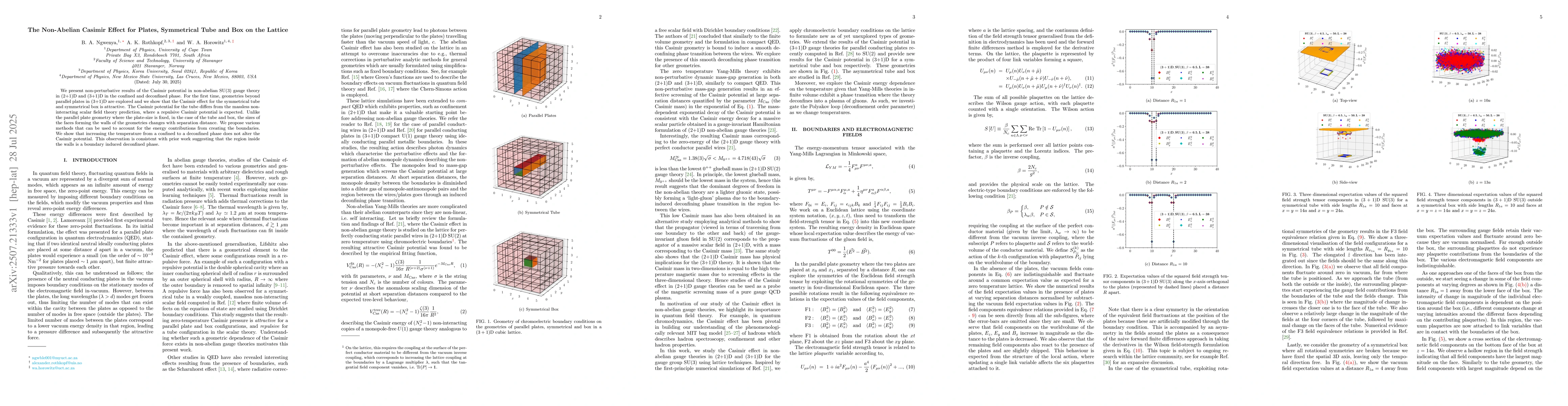 We present non-perturbative results of the Casimir potential in non-abelian SU(3) gauge theory in (2+1)D and (3+1)D in the confined and deconfined phase. For the first time, geometries beyond parallel plates in (3+1)D are explored and we show that the Casimir effect for the symmetrical tube and symmetrical box is attractive. The Casimir potential for the tube differs from the massless non-interacting scalar field theory prediction, where a repulsive Casimir potential is expected. Unlike the parallel plate geometry where the plate-size is fixed, in the case of the tube and box, the sizes of the faces forming the walls of the geometries changes with separation distance. We propose various methods that can be used to account for the energy contributions from creating the boundaries. We show that increasing the temperature from a confined to a deconfined phase does not alter the Casimir potential. This observation is consistent with prior work suggesting that the region inside the walls is a boundary induced deconfined phase.