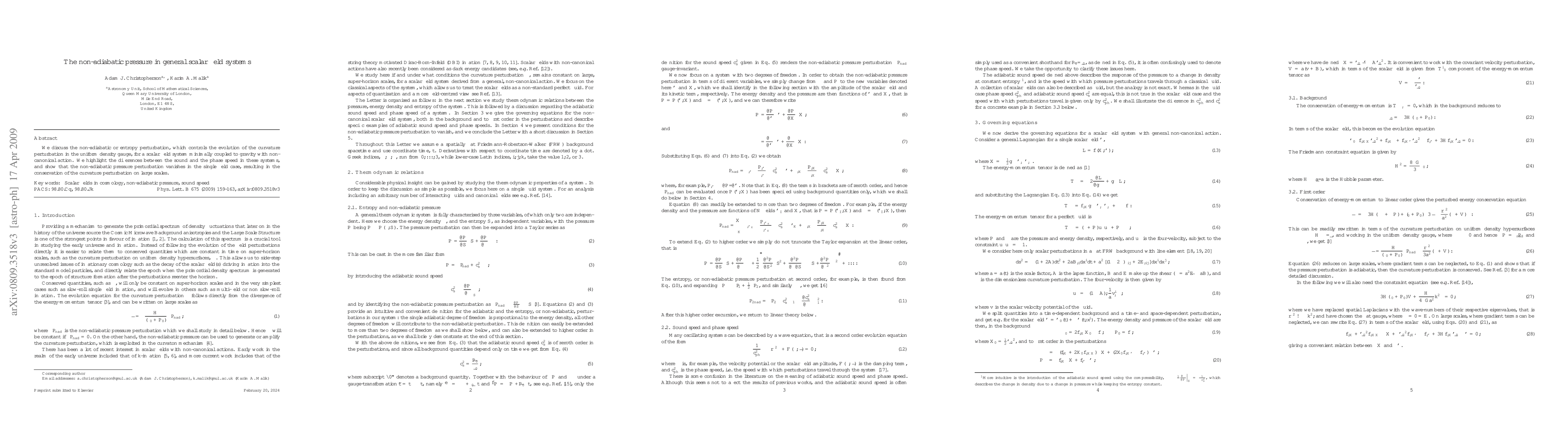 We discuss the non-adiabatic or entropy perturbation, which controls the evolution of the curvature perturbation in the uniform density gauge, for a scalar field system minimally coupled to gravity with non-canonical action. We highlight the differences between the sound and the phase speed in these systems, and show that the non-adiabatic pressure perturbation vanishes in the single field case, resulting in the conservation of the curvature perturbation on large scales.