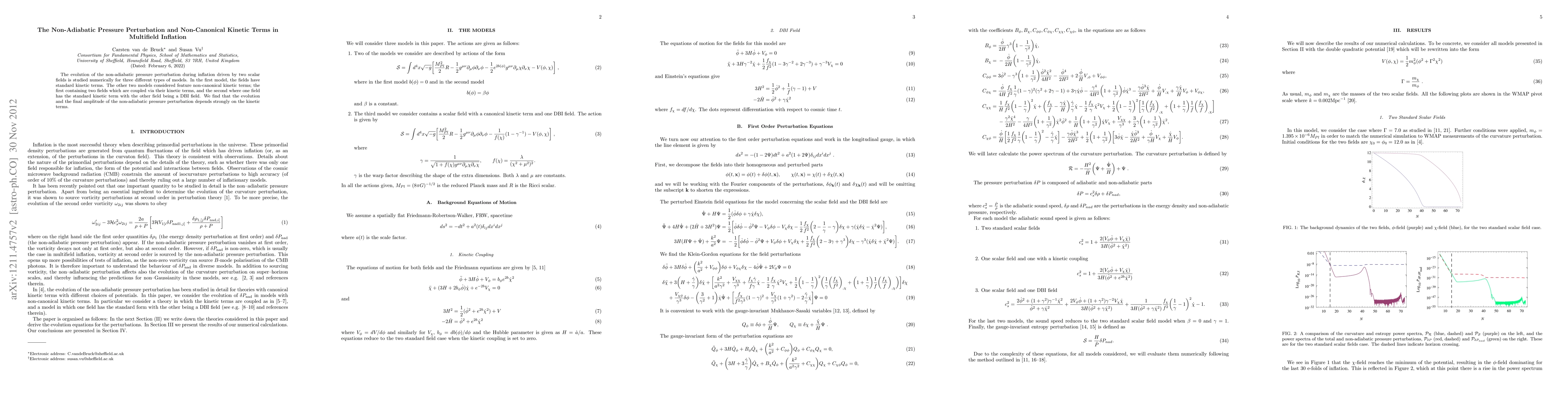 The evolution of the non-adiabatic pressure perturbation during inflation driven by two scalar fields is studied numerically for three different types of models. In the first model, the fields have standard kinetic terms. The other two models considered feature non-canonical kinetic terms; the first containing two fields which are coupled via their kinetic terms, and the second where one field has the standard kinetic term with the other field being a DBI field. We find that the evolution and the final amplitude of the non-adiabatic pressure perturbation depends strongly on the kinetic terms.
