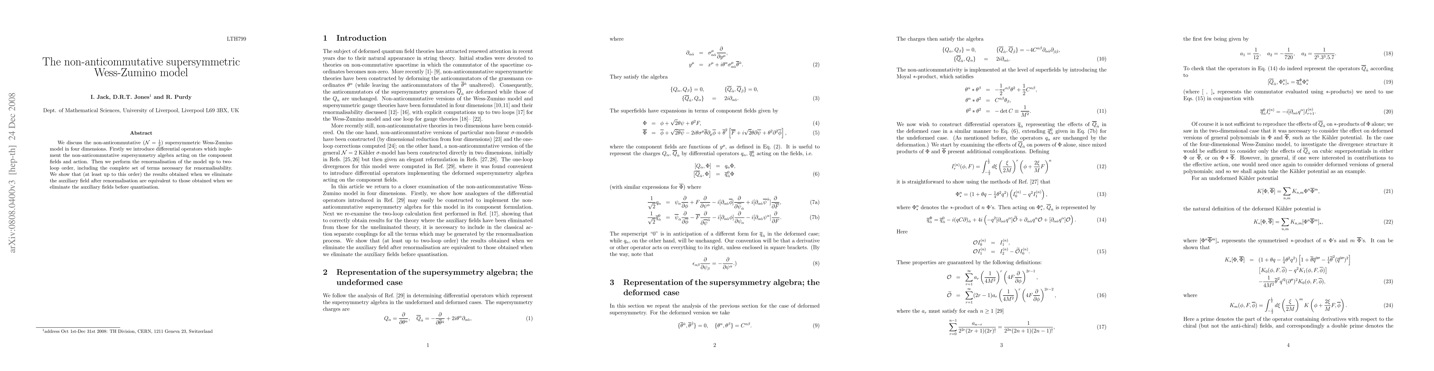 We discuss the non-anticommutative (N=1/2) supersymmetric Wess-Zumino model in four dimensions. Firstly we introduce differential operators which implement the non-anticommutative supersymmetry algebra acting on the component fields and action. Then we perform the renormalisation of the model up to two-loop order, including the complete set of terms necessary for renormalisability. We show that (at least up to this order) the results obtained when we eliminate the auxiliary field after renormalisation are equivalent to those obtained when we eliminate the auxiliary fields before quantisation.