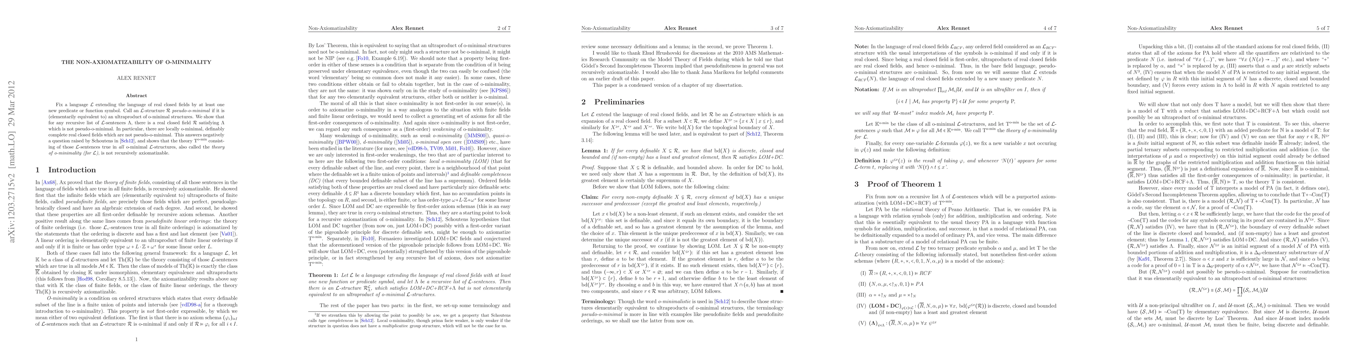 Fix a language L extending the language of real closed fields by at least one new predicate or function symbol. Call an L-structure R pseudo-o-minimal if it is (elementarily equivalent to) an ultraproduct of o-minimal structures. We show that for any recursive list of L-sentences \Lambda, there is a real closed field R satisfying \Lambda, which is not pseudo-o-minimal. In particular, there are locally o-minimal, definably complete real closed fields which are not pseudo-o-minimal. This answers negatively a question raised by Schoutens, and shows that the theory consisting of those L-sentences true in all o-minimal L-structures, called the theory of o-minimality (for L), is not recursively axiomatizable.