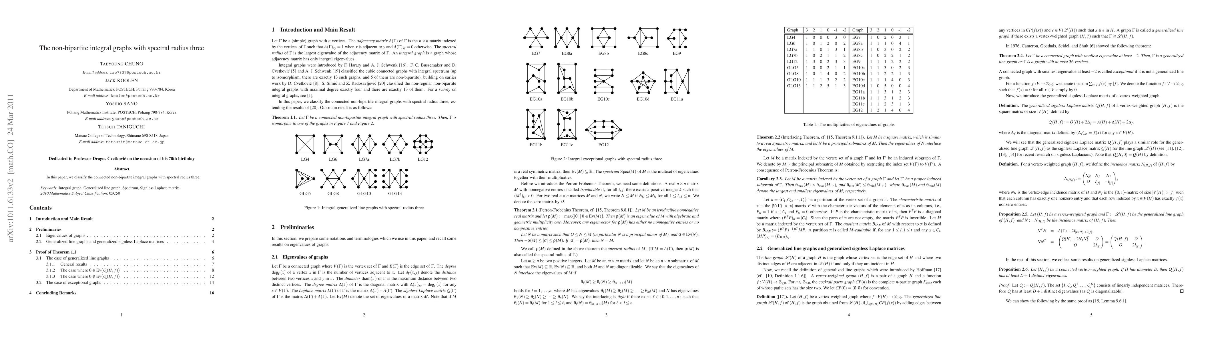 This paper classifies connected non-bipartite integral graphs that have a spectral radius of exactly three, providing a detailed examination of their structural properties.