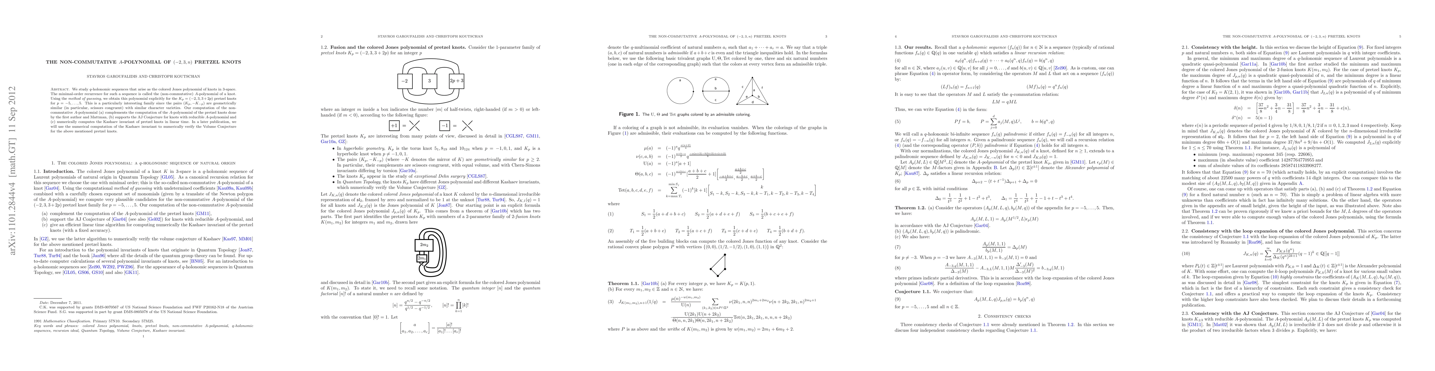 This paper computes the non-commutative A-polynomial for a specific family of (-2,3,n) pretzel knots using a "method of guessing," supporting the AJ Conjecture and enabling linear-time computation of the Kashaev invariant. Future work aims to verify the Volume Conjecture for these knots.