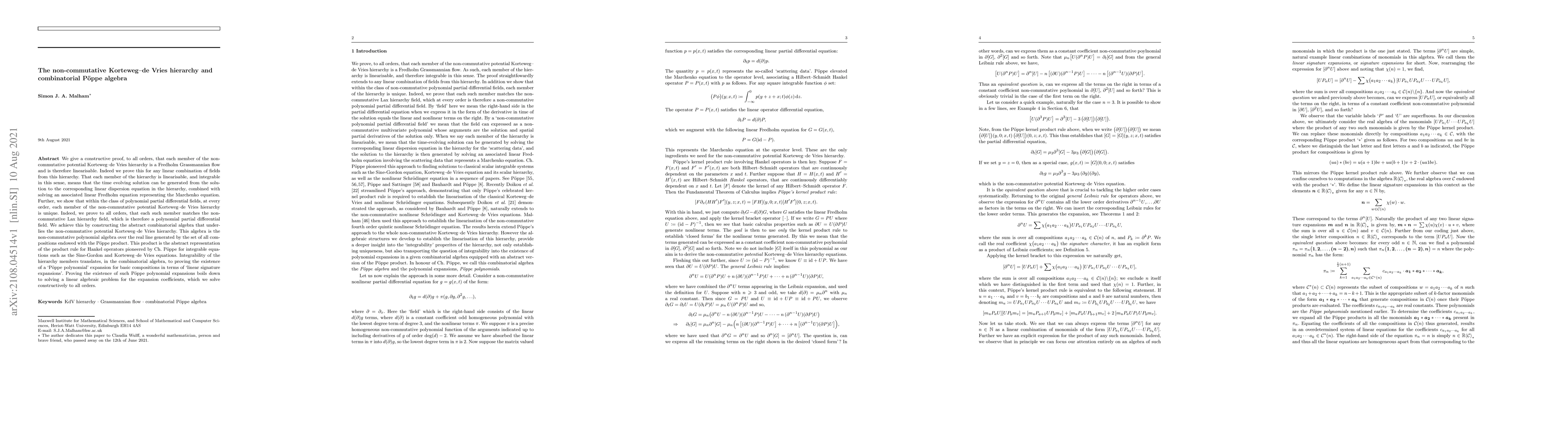 We give a constructive proof, to all orders, that each member of the non-commutative potential Korteweg-de Vries hierarchy is a Fredholm Grassmannian flow and is therefore linearisable. Indeed we prove this for any linear combination of fields from this hierarchy. That each member of the hierarchy is linearisable, and integrable in this sense, means that the time evolving solution can be generated from the solution to the corresponding linear dispersion equation in the hierarchy, combined with solving an associated linear Fredholm equation representing the Marchenko equation. Further, we show that within the class of polynomial partial differential fields, at every order, each member of the non-commutative potential Korteweg--de Vries hierarchy is unique. Indeed, we prove to all orders, that each such member matches the non-commutative Lax hierarchy field, which is therefore a polynomial partial differential field. We achieve this by constructing the abstract combinatorial algebra that underlies the non-commutative potential Korteweg-de Vries hierarchy. This algebra is the non-commutative polynomial algebra over the real line generated by the set of all compositions endowed with the Poppe product. This product is the abstract representation of the product rule for Hankel operators pioneered by Ch. Poppe for integrable equations such as the Sine-Gordon and Korteweg-de Vries equations. Integrability of the hierarchy members translates, in the combinatorial algebra, to proving the existence of a `Poppe polynomial' expansion for basic compositions in terms of `linear signature expansions'. Proving the existence of such Poppe polynomial expansions boils down to solving a linear algebraic problem for the expansion coefficients, which we solve constructively to all orders.