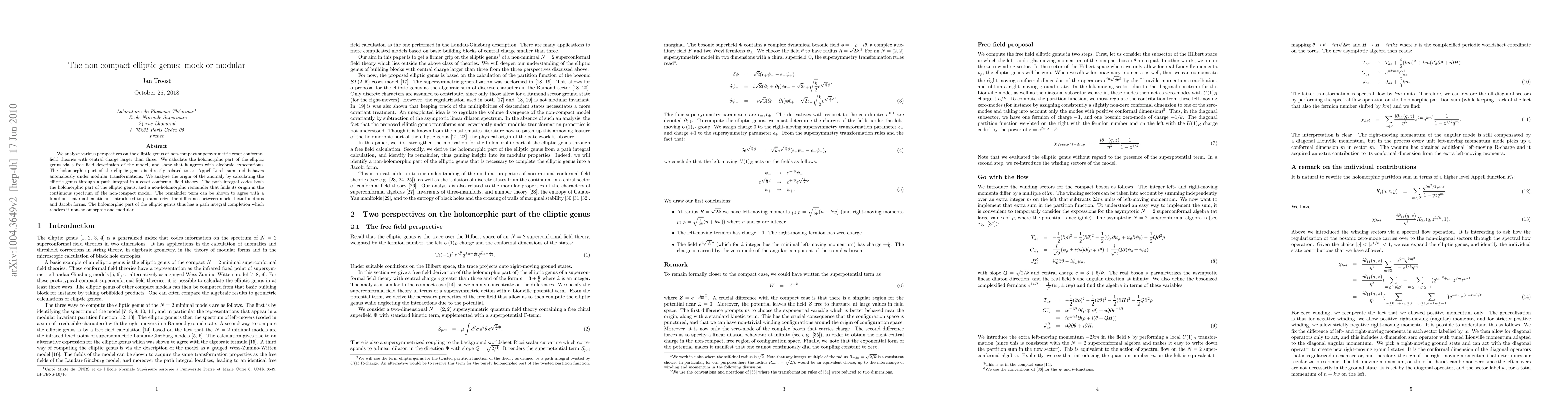 We analyze various perspectives on the elliptic genus of non-compact supersymmetric coset conformal field theories with central charge larger than three. We calculate the holomorphic part of the elliptic genus via a free field description of the model, and show that it agrees with algebraic expectations. The holomorphic part of the elliptic genus is directly related to an Appell-Lerch sum and behaves anomalously under modular transformation properties. We analyze the origin of the anomaly by calculating the elliptic genus through a path integral in a coset conformal field theory. The path integral codes both the holomorphic part of the elliptic genus, and a non-holomorphic remainder that finds its origin in the continuous spectrum of the non-compact model. The remainder term can be shown to agree with a function that mathematicians introduced to parameterize the difference between mock theta functions and Jacobi forms. The holomorphic part of the elliptic genus thus has a path integral completion which renders it non-holomorphic and modular.