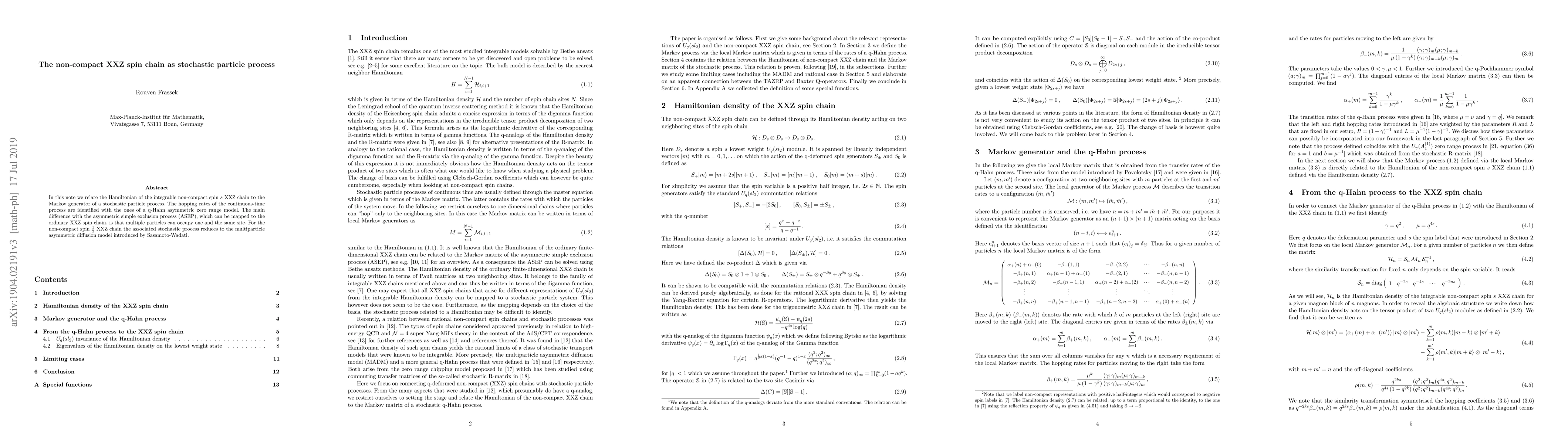 This paper connects the Hamiltonian of the non-compact XXZ spin chain to the Markov generator of a stochastic particle process, identifying the hopping rates with those of a q-Hahn asymmetric zero range model. Unlike the asymmetric simple exclusion process, this model allows multiple particles to occupy the same site, leading to a multiparticle asymmetric diffusion model for the spin $\frac{1}{2}$ case.