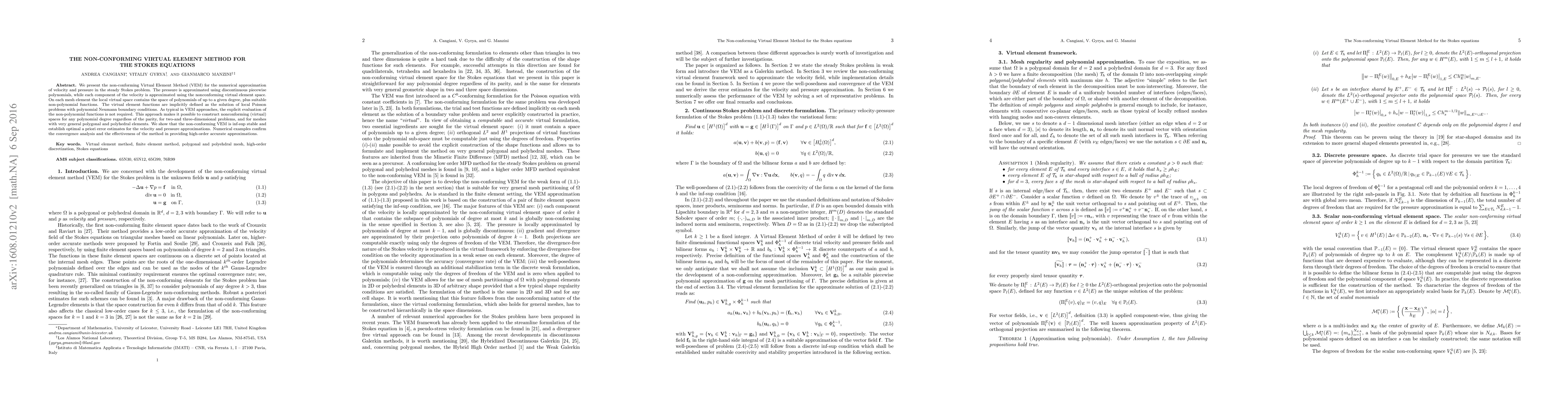 The paper introduces a non-conforming Virtual Element Method (VEM) for solving the steady Stokes problem, featuring discontinuous pressure and nonconforming velocity approximations. The method is shown to be inf-sup stable and provides optimal error estimates, with numerical examples validating its high-order accuracy.