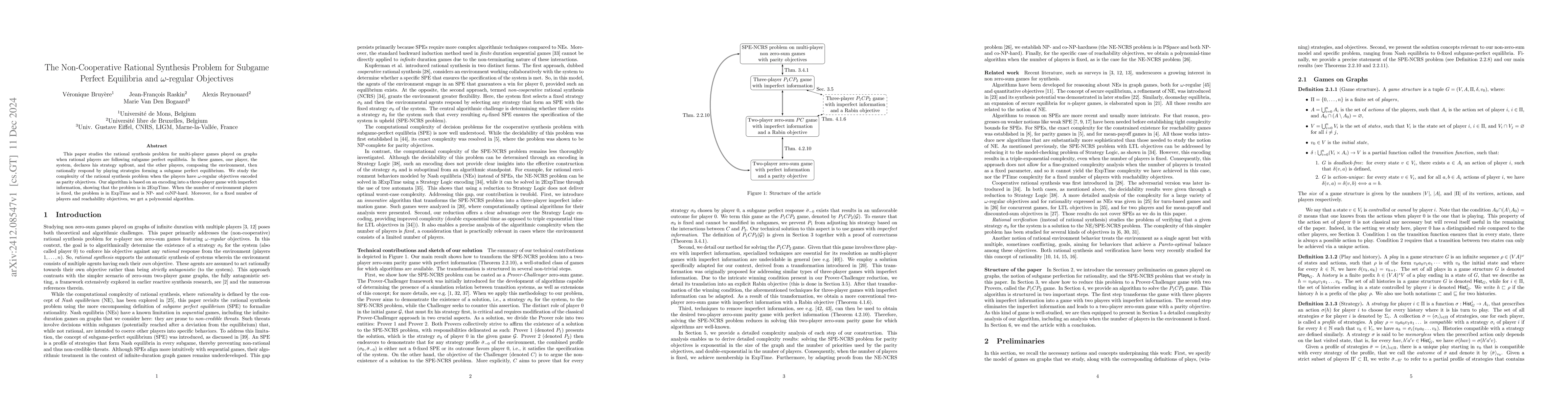 This paper explores the rational synthesis problem in multi-player games on graphs, focusing on strategies forming subgame perfect equilibria. It addresses the complexity of achieving {\omega}-regular objectives, presenting an algorithm that encodes the problem into a three-player game with imperfect information. The synthesis problem is shown to be in 2ExpTime, ExpTime for fixed environment players, and polynomial for a fixed number of players with reachability objectives.