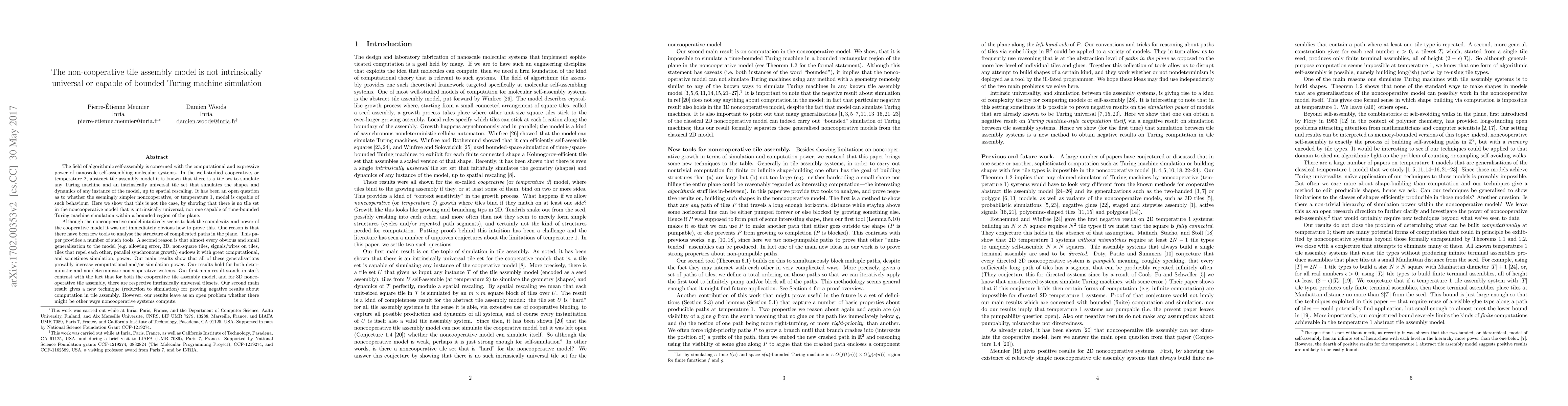 This paper demonstrates that the non-cooperative tile assembly model lacks intrinsic universality and cannot simulate bounded Turing machines within a bounded region, contrasting with the cooperative model's capabilities. It introduces new analytical tools to prove these negative results, showing that various model generalizations enhance its computational power.