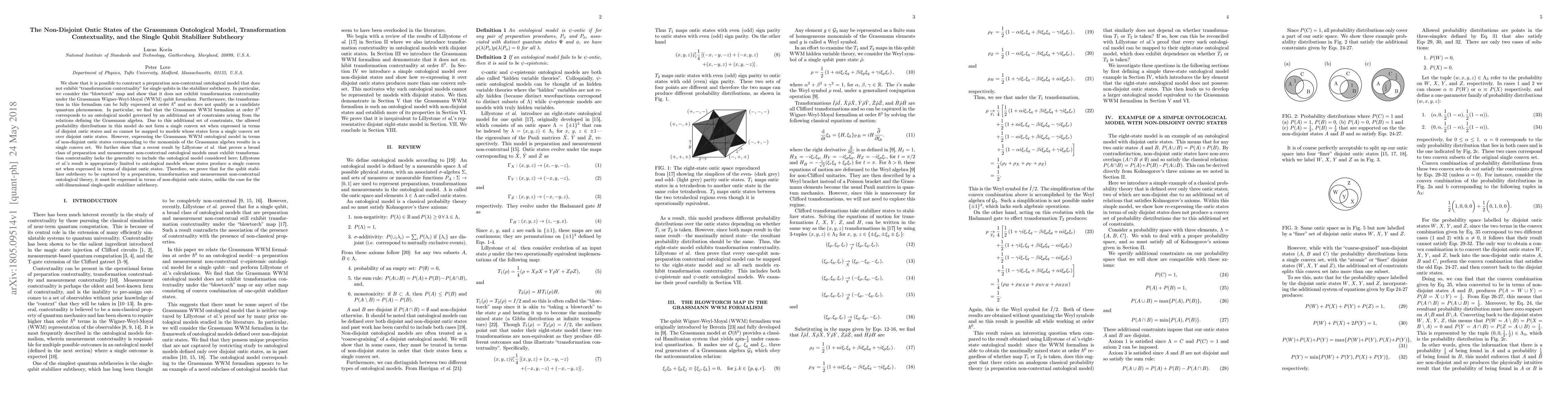 The paper presents a novel ontological model for single qubits using the Grassmann WWM formalism, demonstrating that non-disjoint ontic states can effectively capture the qubit stabilizer subtheory without transformation contextuality.