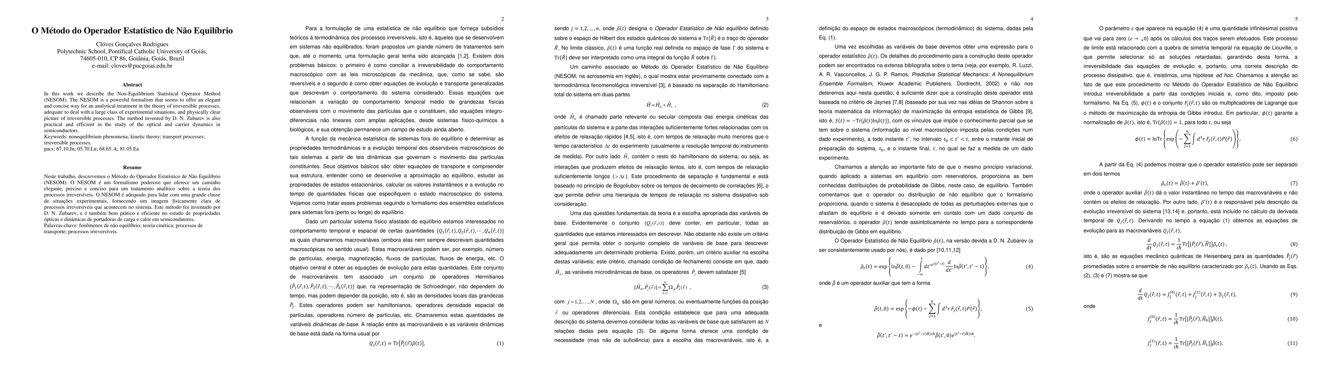 The Non-Equilibrium Statistical Operator Method (NESOM) provides an analytical framework for studying irreversible processes, offering a clear and concise approach to kinetic theory and transport phenomena, and is particularly useful in semiconductor dynamics. Developed by D. N. Zubarev, it is practical for analyzing nonequilibrium phenomena.