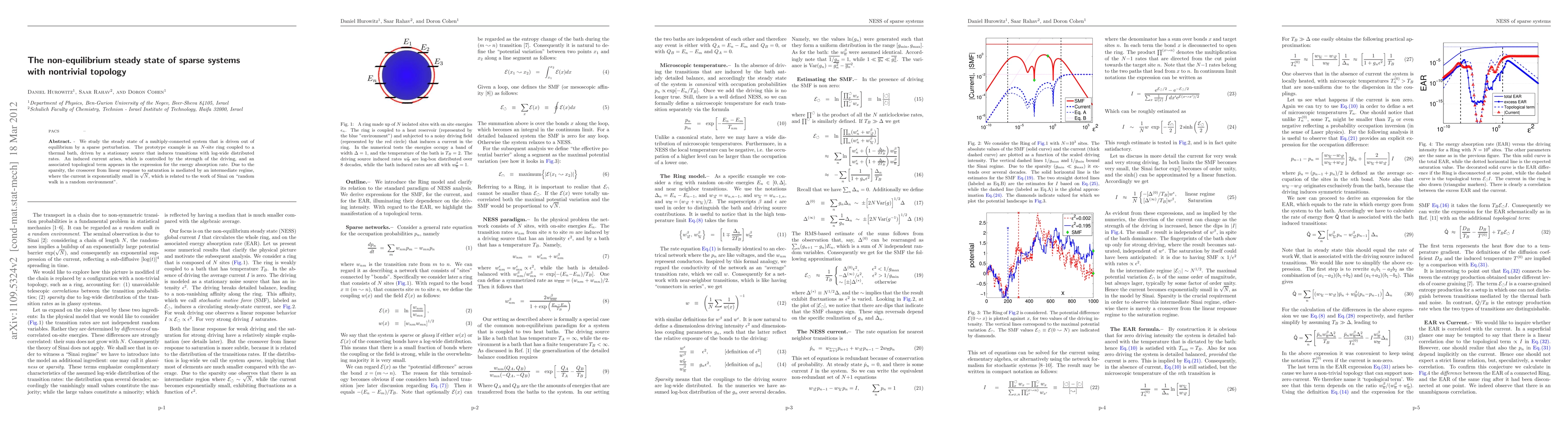 This paper explores the non-equilibrium steady state of a sparse, multiply-connected system driven out of equilibrium by a sparse perturbation. It finds an induced current and a topological term in the energy absorption rate, with a crossover from linear response to saturation mediated by an intermediate regime.