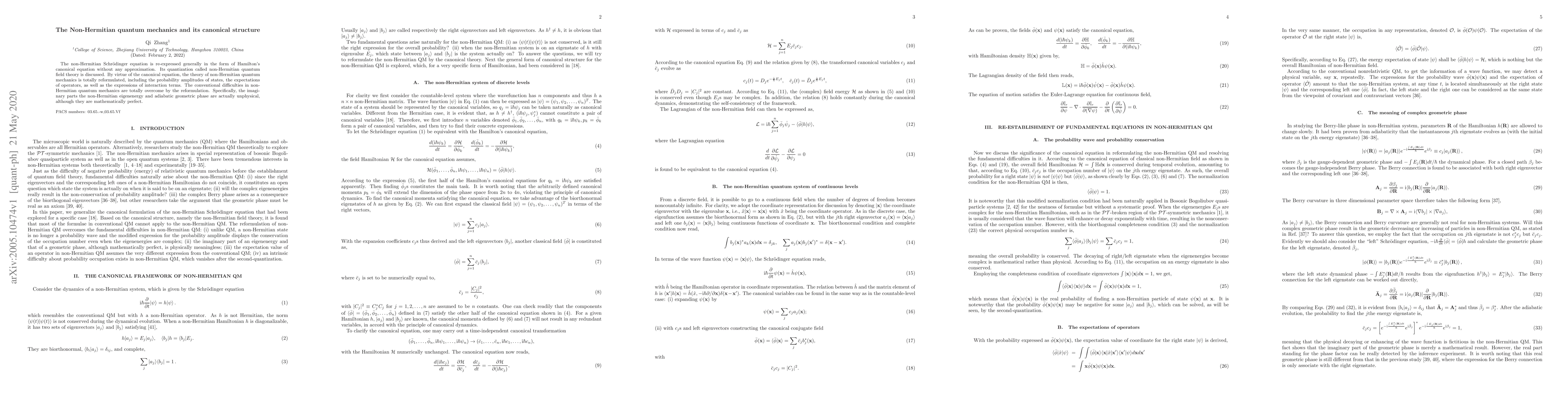 This paper reformulates non-Hermitian quantum mechanics using Hamilton's canonical equations, achieving a new quantization framework that resolves conventional difficulties, and clarifies the unphysical nature of imaginary parts in eigenenergies and geometric phases.