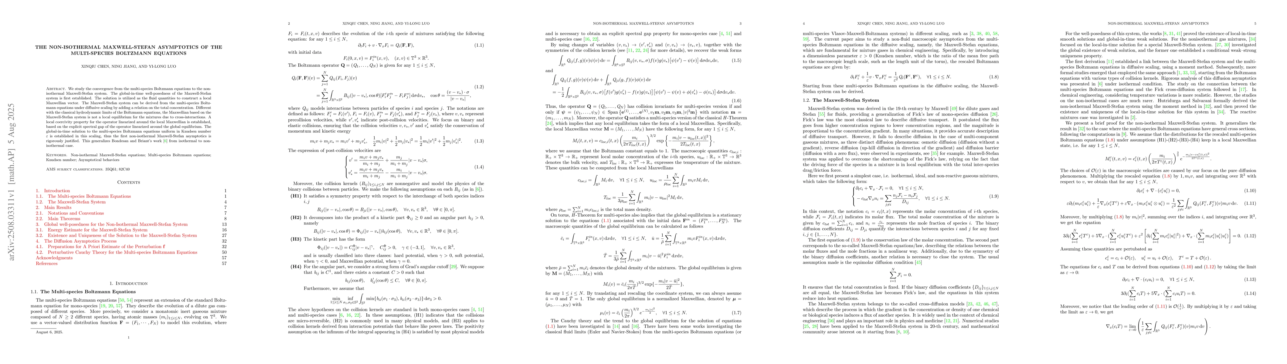 We study the convergence from the multi-species Boltzmann equations to the non-isothermal Maxwell-Stefan system. The global-in-time well-posedness of the Maxwell-Stefan system is first established. The solution is utilized as the fluid quantities to construct a local Maxwellian vector. The Maxwell-Stefan system can be derived from the multi-species Boltzmann equations under diffusive scaling by adding a relation on the total concentration. Different with the classical hydrodynamic limits of the Boltzmann equations, the Maxwellian based on the Maxwell-Stefan system is not a local equilibrium for the mixtures due to cross-interactions. A local coercivity property for the operator linearized around the local Maxwellian is established, based on the explicit spectral gap of the operator linearized around the global equilibrium. The global-in-time solution to the multi-species Boltzmann equations uniform in Knudsen number $\varepsilon$ is established in this scaling, thus the first non-isothermal Maxwell-Stefan asymptotics is rigorously justified. This generalizes Bondesan and Briant's work \cite{briant2021stability} from isothermal to non-isothermal case.