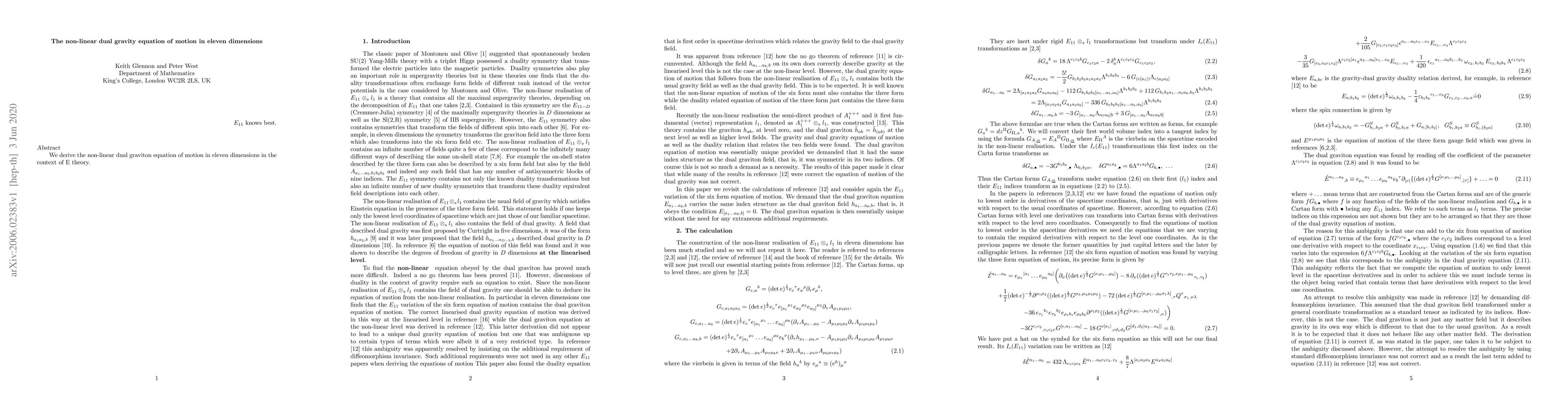 We derive the non-linear dual graviton equation of motion in eleven dimensions in the context of E theory.