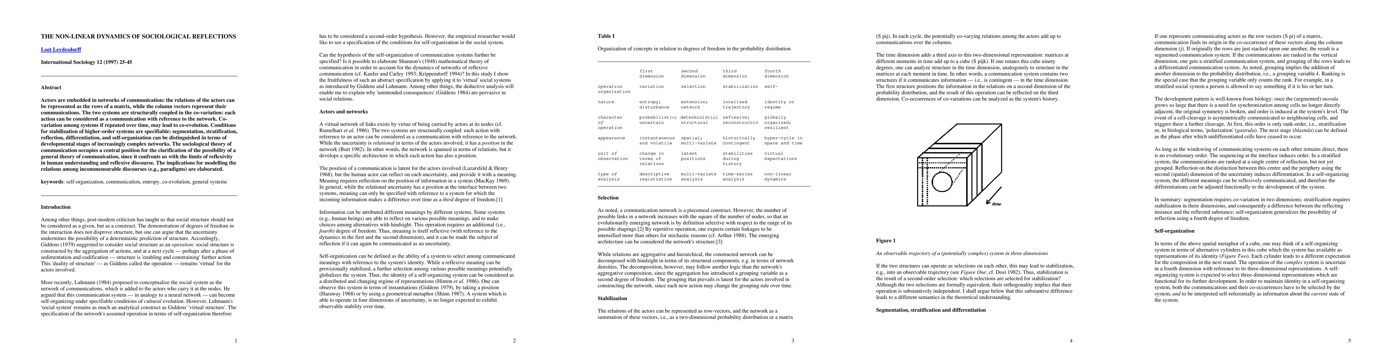 Actors are embedded in networks of communication: the relations of the actors can be represented as the rows of a matrix, while the column vectors represent their communications. The two systems are structurally coupled in the co-variation: each action can be considered as a communication with reference to the network. Co-variation among systems if repeated over time, may lead to co-evolution. Conditions for stabilization of higher-order systems are specifiable: segmentation, stratification, reflection, differentiation, and self-organization can be distinguished in terms of developmental stages of increasingly complex networks. The sociological theory of communication occupies a central position for the clarification of the possibility of a general theory of communication, since it confronts us with the limits of reflexivity in human understanding and reflexive discourse. The implications for modelling the relations among incommensurable discourses (e.g., paradigms) are elaborated.