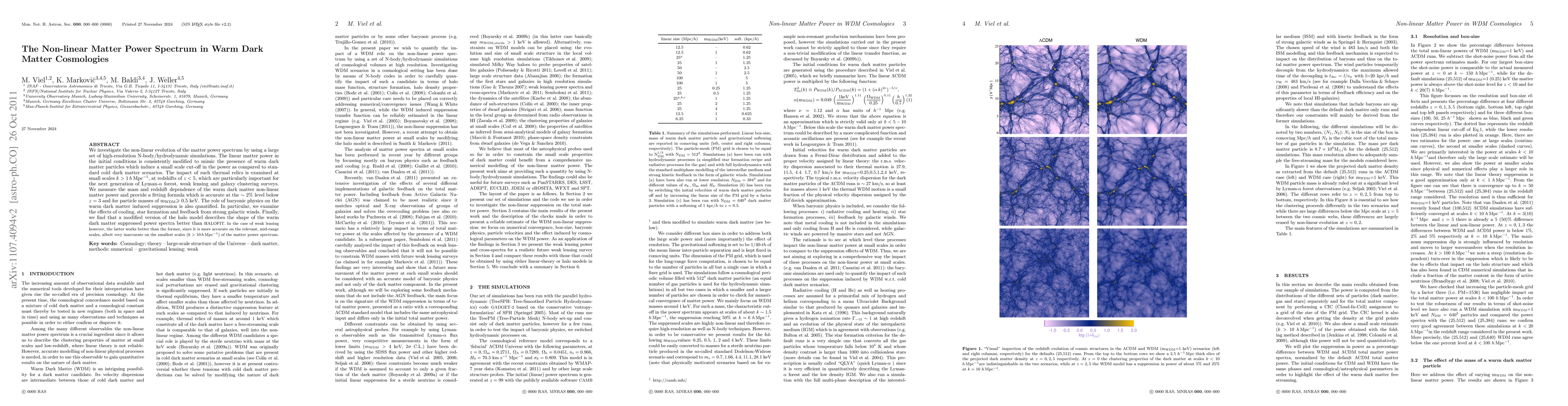 The paper presents a comprehensive analysis of the non-linear matter power spectrum in WDM cosmologies, including a fitting formula for the suppression that agrees with simulations at the 2% level below z = 3 for m_wdm > 0.5 keV.