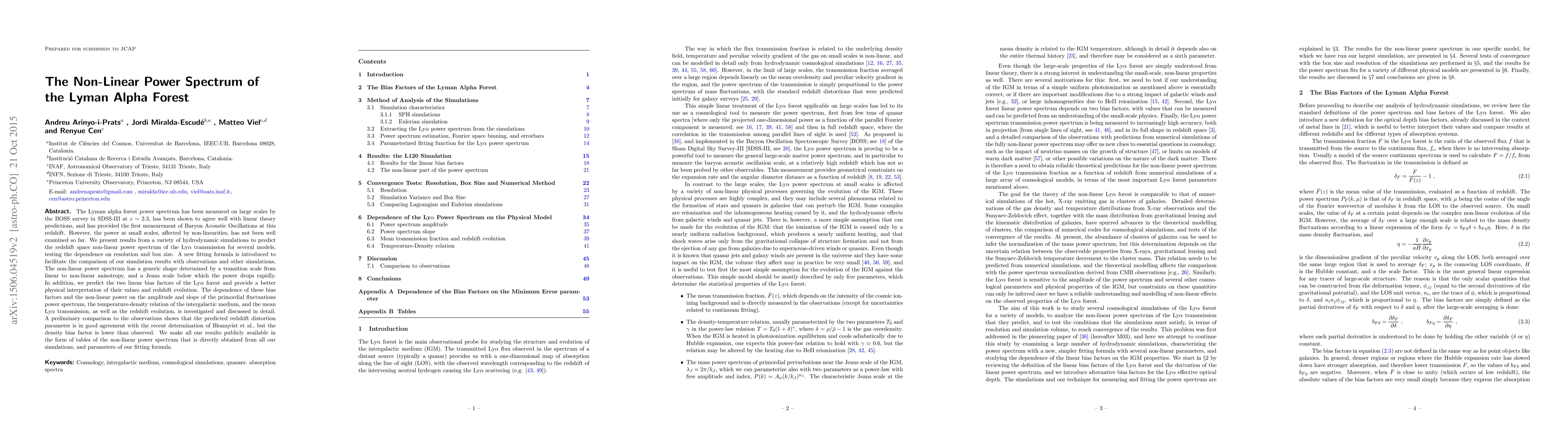 This paper investigates the non-linear power spectrum of the Lyman Alpha forest using hydrodynamic simulations, introducing a new fitting formula to compare with observations. It finds a transition scale for linear to non-linear anisotropy and predicts the linear bias factors, showing good agreement with recent observations for the redshift distortion parameter but a discrepancy in the density bias factor.