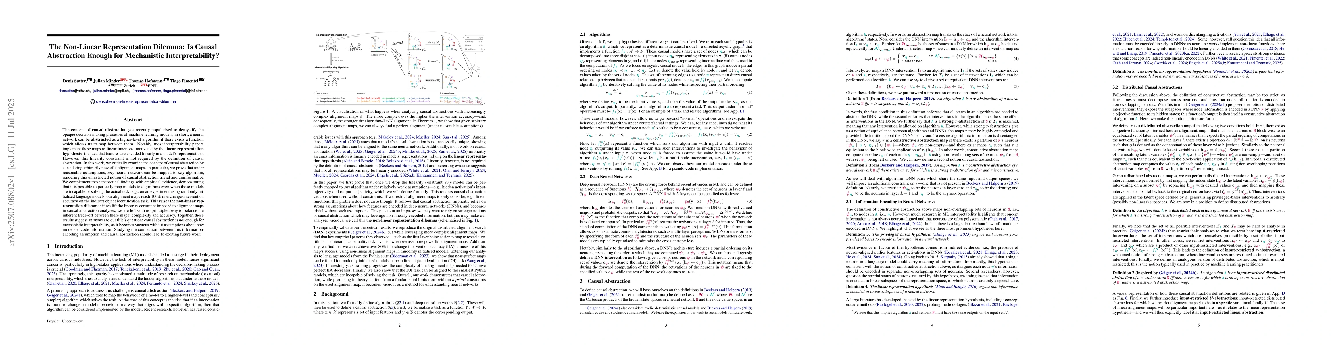 The concept of causal abstraction got recently popularised to demystify the opaque decision-making processes of machine learning models; in short, a neural network can be abstracted as a higher-level algorithm if there exists a function which allows us to map between them. Notably, most interpretability papers implement these maps as linear functions, motivated by the linear representation hypothesis: the idea that features are encoded linearly in a model's representations. However, this linearity constraint is not required by the definition of causal abstraction. In this work, we critically examine the concept of causal abstraction by considering arbitrarily powerful alignment maps. In particular, we prove that under reasonable assumptions, any neural network can be mapped to any algorithm, rendering this unrestricted notion of causal abstraction trivial and uninformative. We complement these theoretical findings with empirical evidence, demonstrating that it is possible to perfectly map models to algorithms even when these models are incapable of solving the actual task; e.g., on an experiment using randomly initialised language models, our alignment maps reach 100% interchange-intervention accuracy on the indirect object identification task. This raises the non-linear representation dilemma: if we lift the linearity constraint imposed to alignment maps in causal abstraction analyses, we are left with no principled way to balance the inherent trade-off between these maps' complexity and accuracy. Together, these results suggest an answer to our title's question: causal abstraction is not enough for mechanistic interpretability, as it becomes vacuous without assumptions about how models encode information. Studying the connection between this information-encoding assumption and causal abstraction should lead to exciting future work.