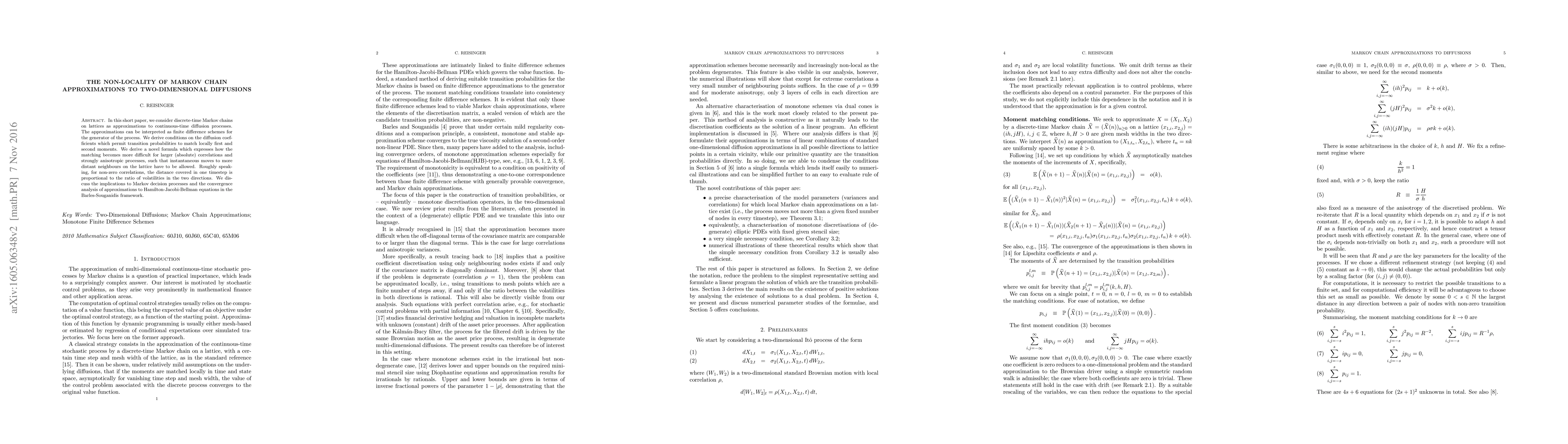 This paper explores how discrete-time Markov chains on lattices can approximate two-dimensional diffusions, with conditions for matching local moments, and discusses implications for Markov decision processes.
