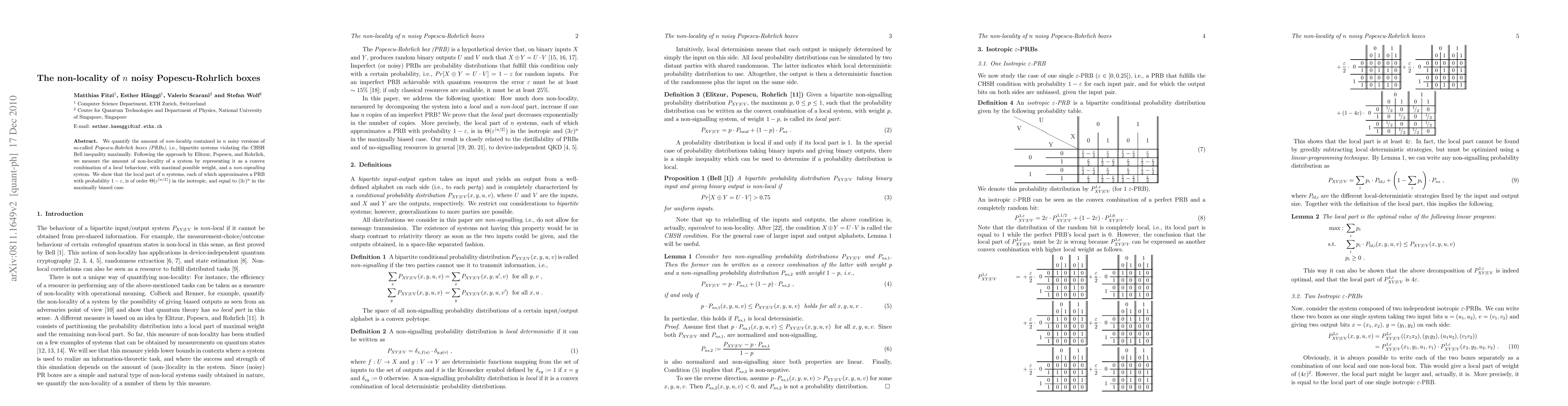 This paper quantifies non-locality in noisy versions of Popescu-Rohrlich boxes, showing that the local part of n such systems approximates a PRB with probability $1-\epsilon$, with local part order $\Theta(\epsilon^{\lceil n/2\rceil})$ in the isotropic case and $(3\epsilon)^n$ in the maximally biased case.