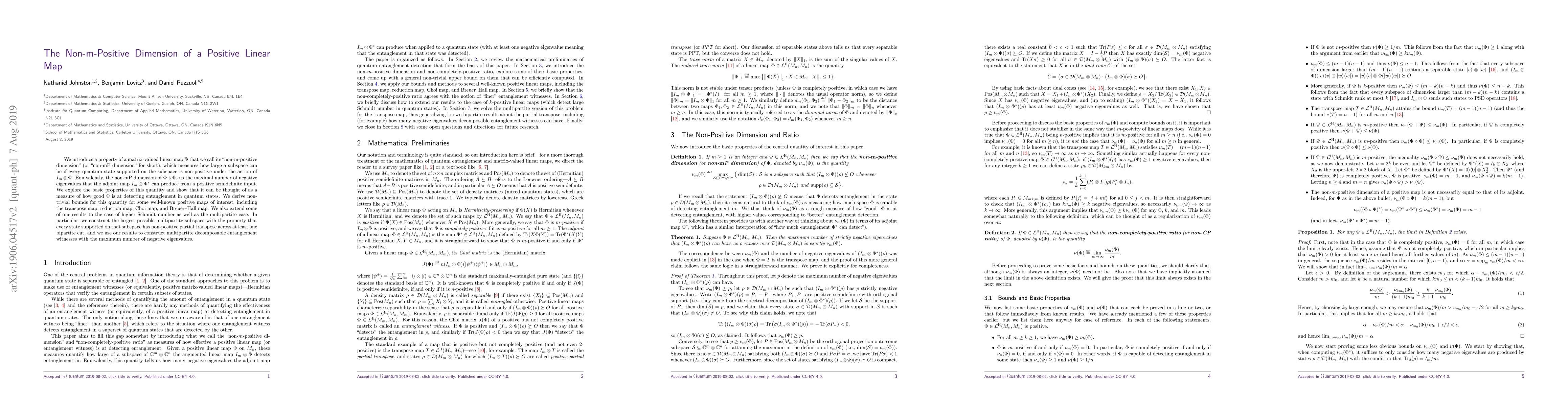 We introduce a property of a matrix-valued linear map $\Phi$ that we call its "non-m-positive dimension" (or "non-mP dimension" for short), which measures how large a subspace can be if every quantum state supported on the subspace is non-positive under the action of $I_m \otimes \Phi$. Equivalently, the non-mP dimension of $\Phi$ tells us the maximal number of negative eigenvalues that the adjoint map $I_m \otimes \Phi^*$ can produce from a positive semidefinite input. We explore the basic properties of this quantity and show that it can be thought of as a measure of how good $\Phi$ is at detecting entanglement in quantum states. We derive non-trivial bounds for this quantity for some well-known positive maps of interest, including the transpose map, reduction map, Choi map, and Breuer--Hall map. We also extend some of our results to the case of higher Schmidt number as well as the multipartite case. In particular, we construct the largest possible multipartite subspace with the property that every state supported on that subspace has non-positive partial transpose across at least one bipartite cut, and we use our results to construct multipartite decomposable entanglement witnesses with the maximum number of negative eigenvalues.
