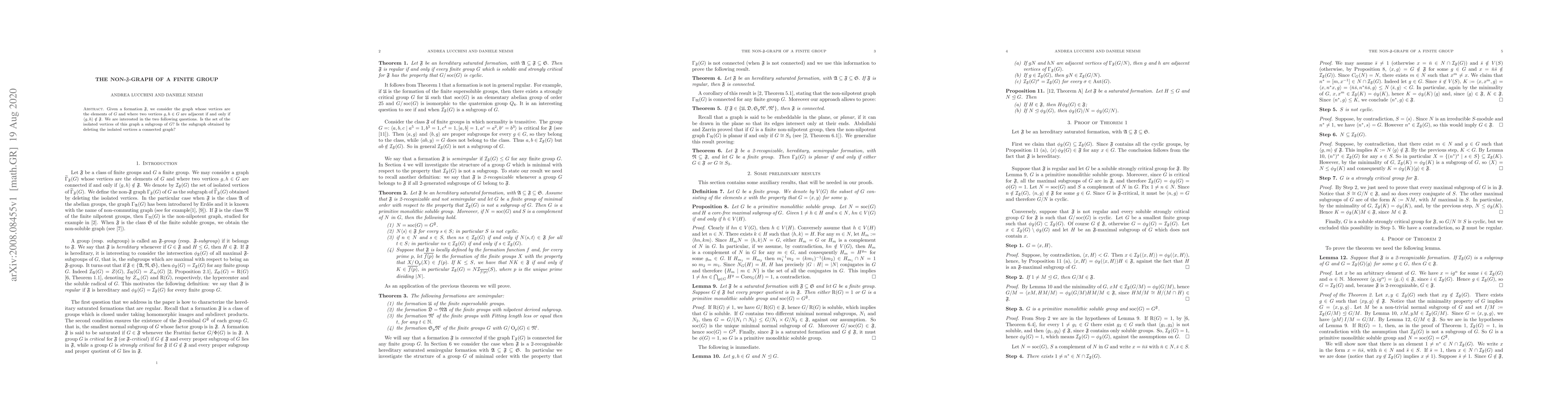 Given a formation $\mathfrak F$, we consider the graph whose vertices are the elements of $G$ and where two vertices $g,h\in G$ are adjacent if and only if $\langle g,h \rangle \notin\mathfrak F$. We are interested in the two following questions. Is the set of the isolated vertices of this graph a subgroup of $G$? Is the subgraph obtained by deleting the isolated vertices a connected graph?