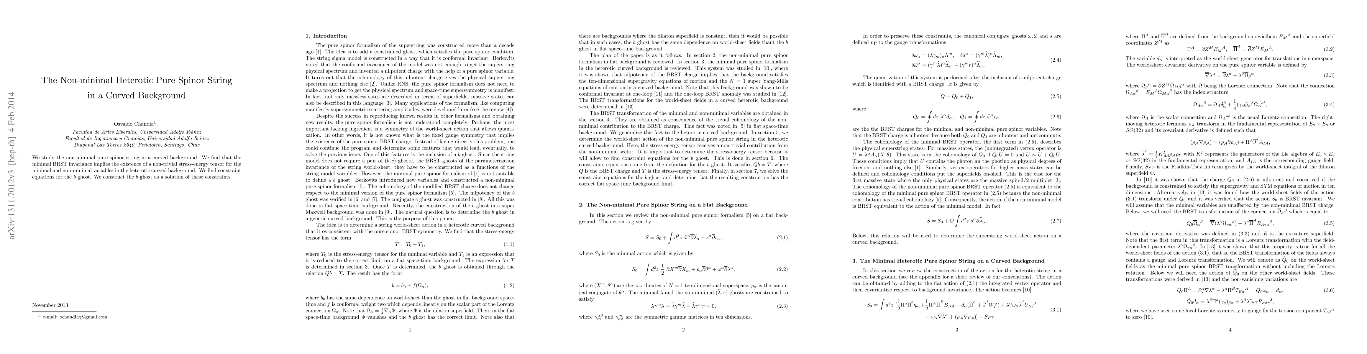 This paper investigates the non-minimal heterotic pure spinor string theory in a curved background, revealing that minimal BRST invariance leads to a non-trivial stress-energy tensor. The authors derive constraint equations for the b ghost and construct it as a solution to these constraints.