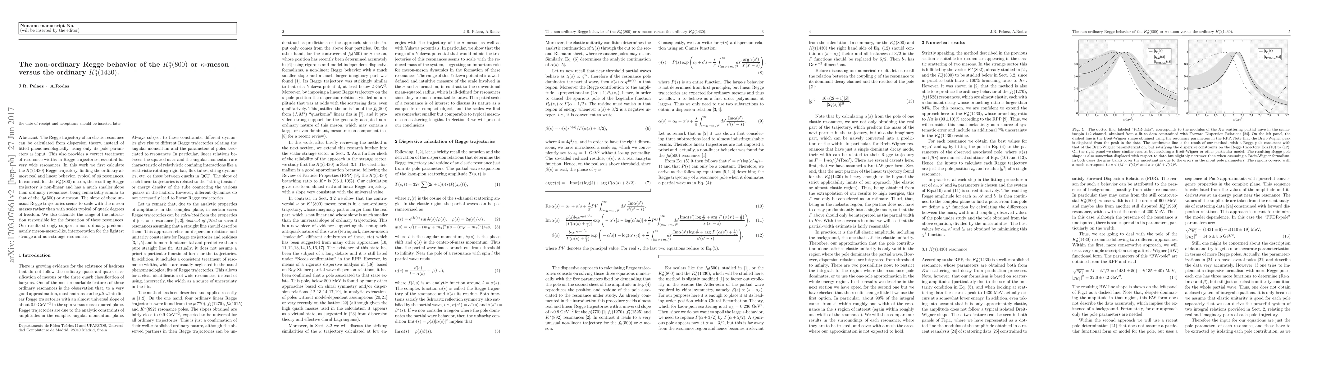Researchers found that a specific meson, K*0(800), exhibits non-ordinary Regge behavior, unlike most quark-antiquark resonances, suggesting a meson-meson-like interpretation for its formation.