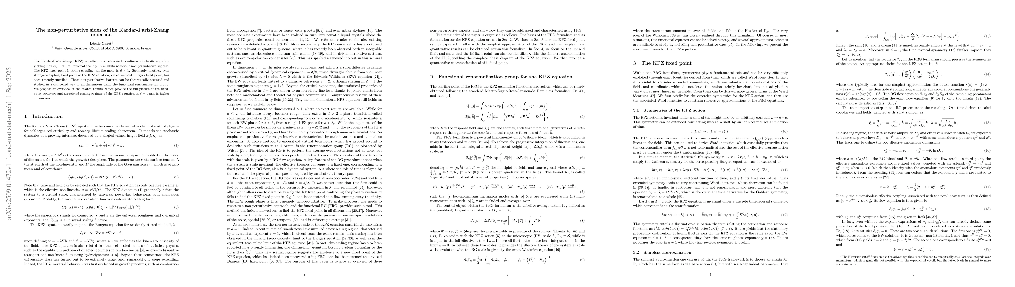 The Kardar-Parisi-Zhang (KPZ) equation is a celebrated non-linear stochastic equation yielding non-equilibrium universal scaling. It exhibits notorious non-perturbative aspects. The KPZ fixed point is strong-coupling, all the more in $d>1$. Strikingly, another, even stronger-coupling fixed point of the KPZ equation, called inviscid Burgers fixed point, has been recently unveiled. These non-pertubative features can be theoretically accessed and studied in a controlled way in all dimensions using the functional renormalisation group. We propose an overview of the related results, which provide the full picture of the fixed-point structure and associated scaling regimes of the KPZ equation in $d=1$ and in higher dimensions.