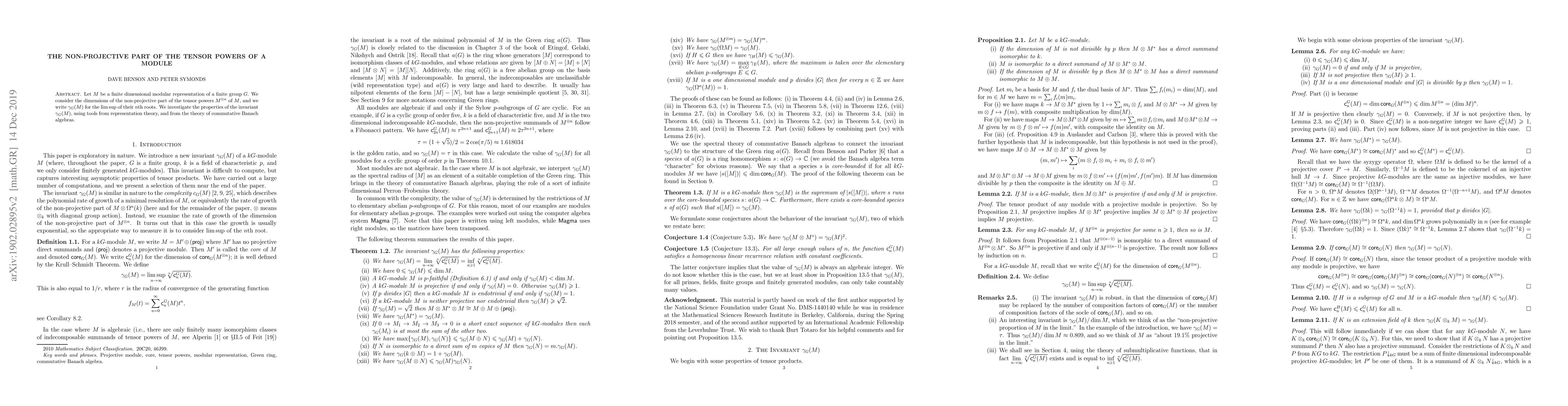 Let $M$ be a finite dimensional modular representation of a finite group $G$. We consider the generating function for the non-projective part of the tensor powers of $M$, and we write $\gamma_G(M)$ for the reciprocal of the radius of convergence of this power series. We investigate the properties of the invariant $\gamma_G(M)$, using tools from representation theory, and from the theory of commutative Banach algebras.