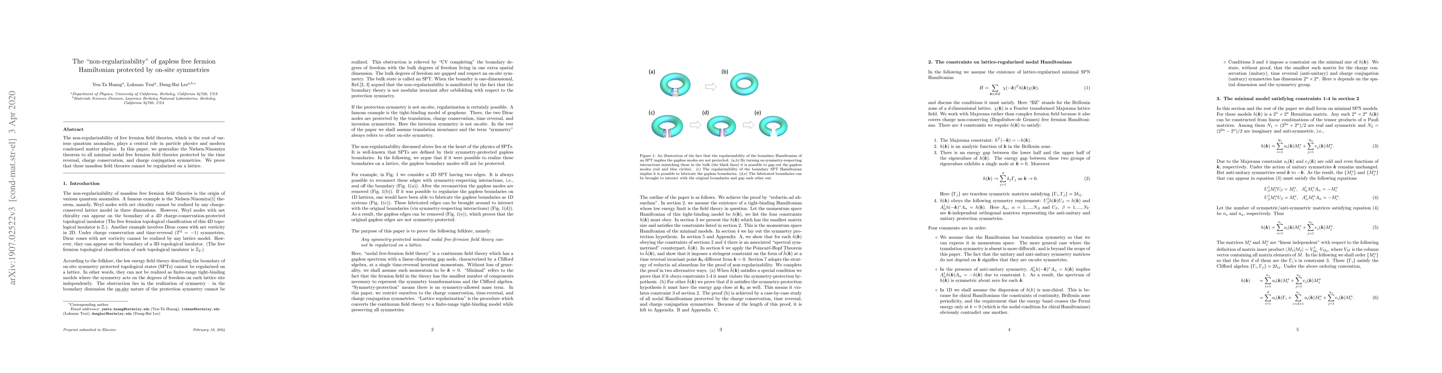 Minimal free fermion field theories protected by time reversal, charge conservation, and charge conjugation symmetries cannot be regularized on a lattice due to their non-regularizability, a key factor in quantum anomalies, according to this generalization of the Nielsen-Ninomiya theorem.
