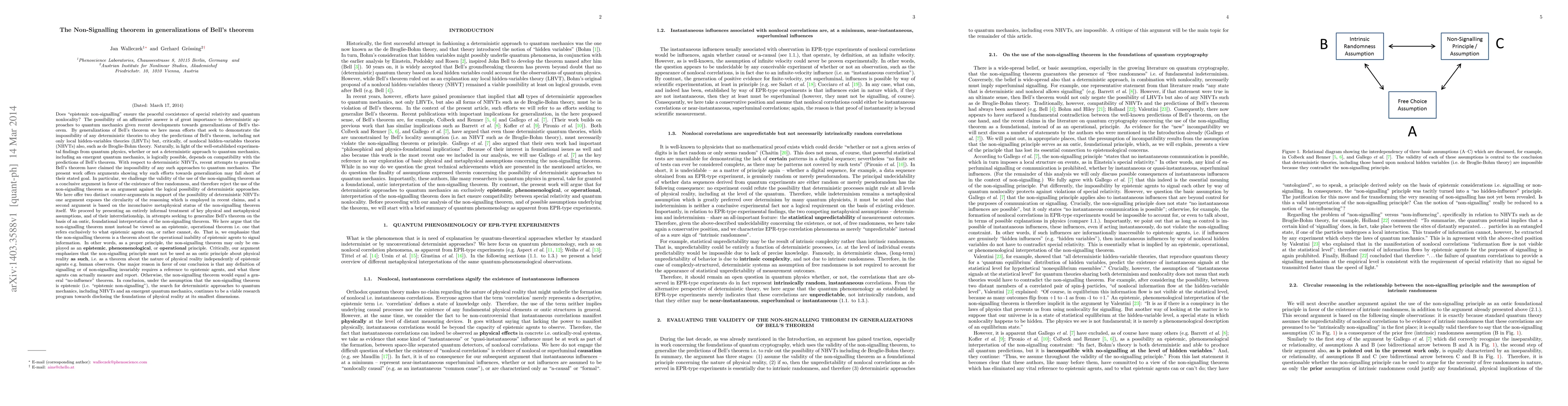This paper argues that the non-signalling theorem should be viewed as an epistemic rather than an ontic principle, thus preserving the possibility of deterministic quantum theories. It contends that the theorem describes the operational limitations of observers rather than imposing fundamental constraints on the nature of reality.