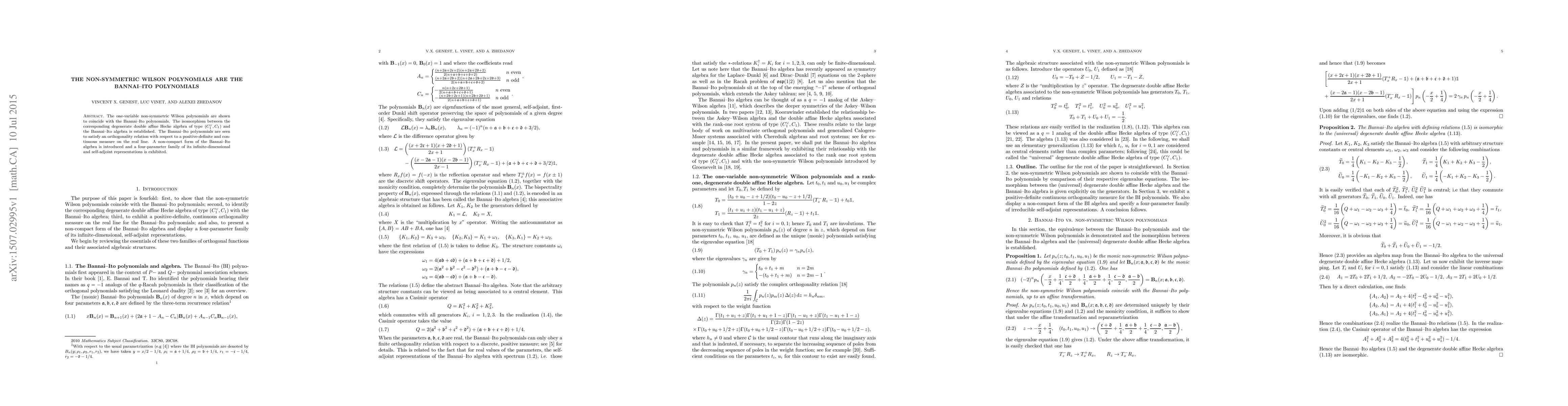 The one-variable non-symmetric Wilson polynomials are shown to coincide with the Bannai-Ito polynomials. The isomorphism between the corresponding degenerate double affine Hecke algebra of type $(C_1^{\vee}, C_1)$ and the Bannai-Ito algebra is established. The Bannai-Ito polynomials are seen to satisfy an orthogonality relation with respect to a positive-definite and continuous measure on the real line. A non-compact form of the Bannai-Ito algebra is introduced and a four-parameter family of its infinite-dimensional and self-adjoint representations is exhibited.